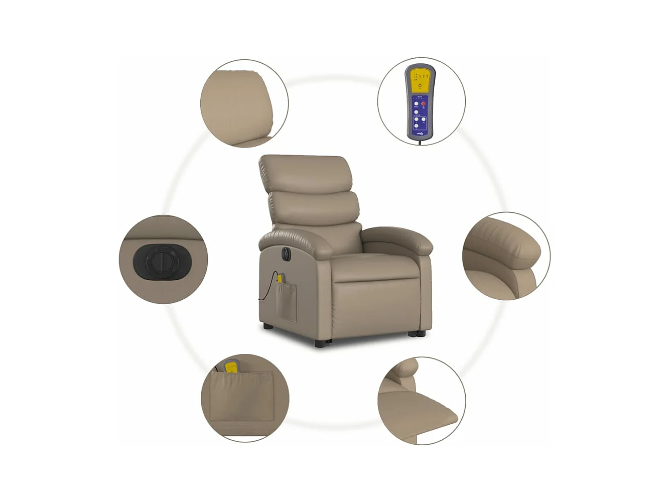 Sillón reclinable de masaje eléctrico cuero sintético capuchino