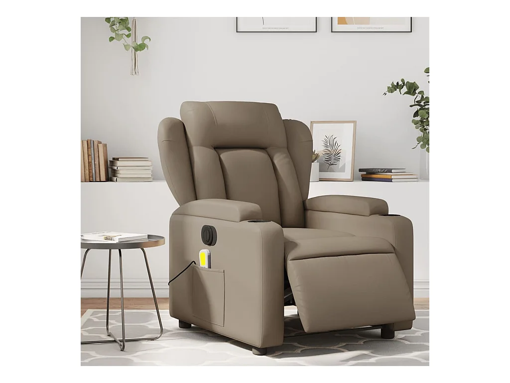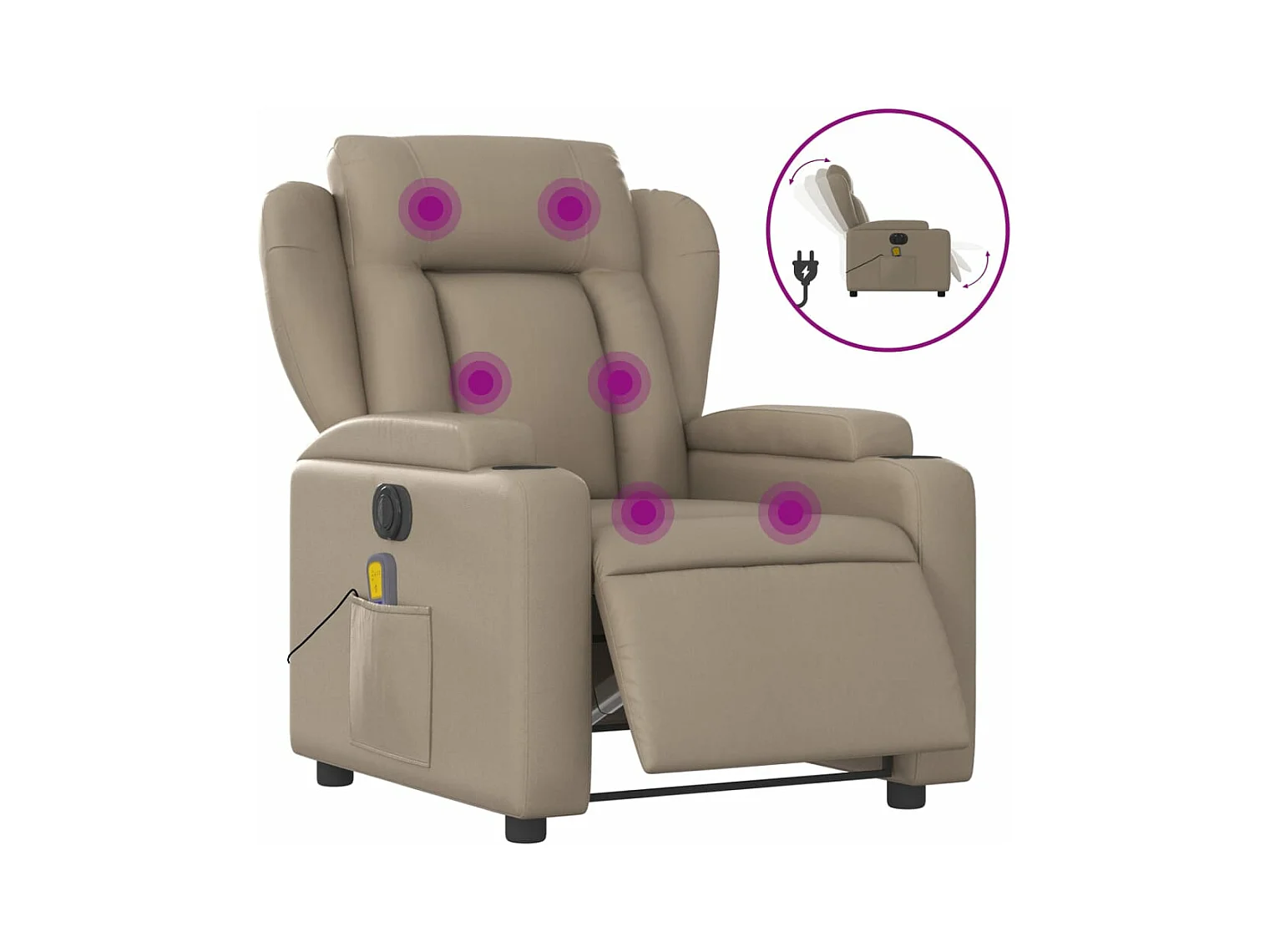 Sillón reclinable de masaje eléctrico cuero sintético capuchino YOE74449