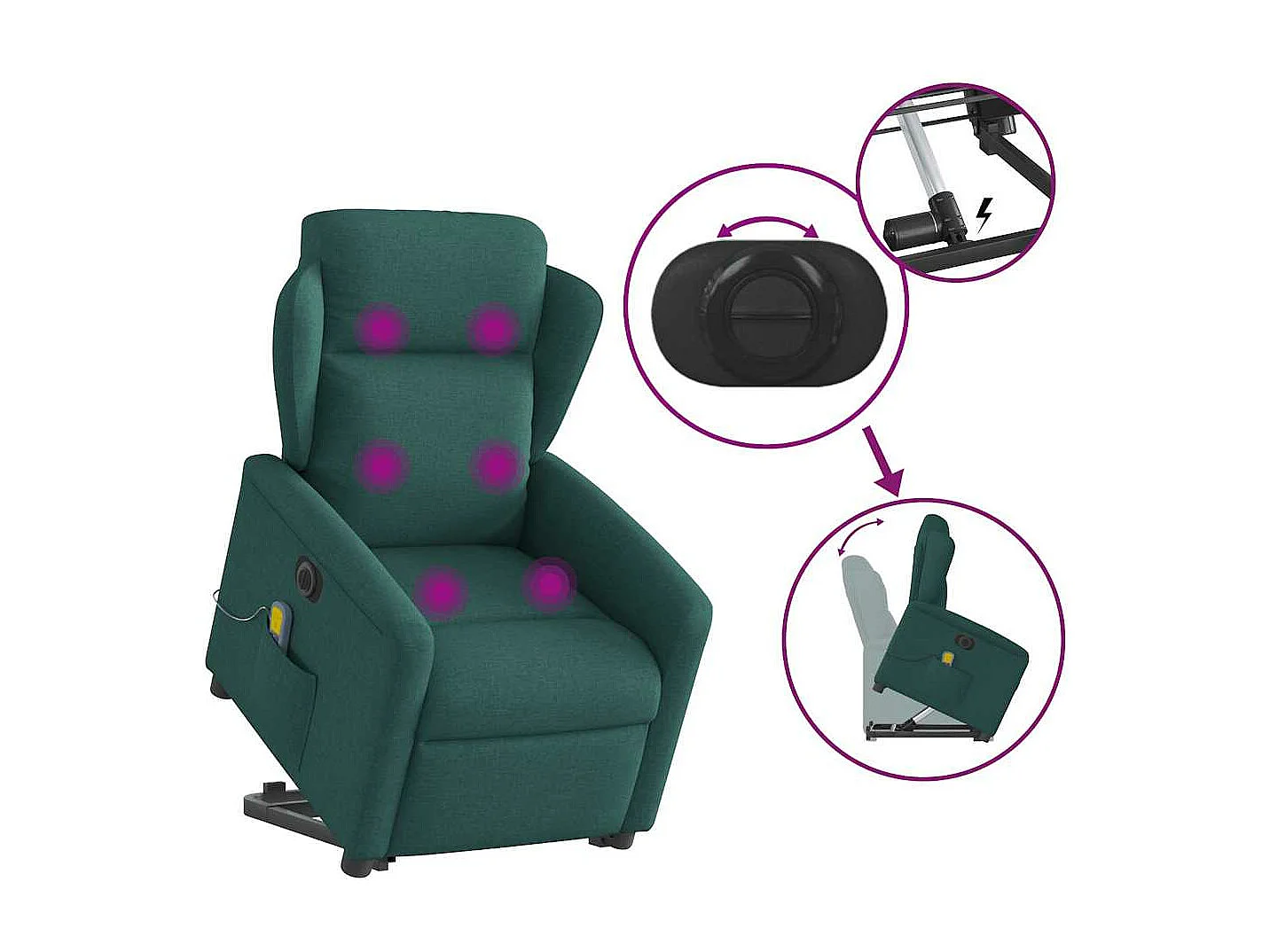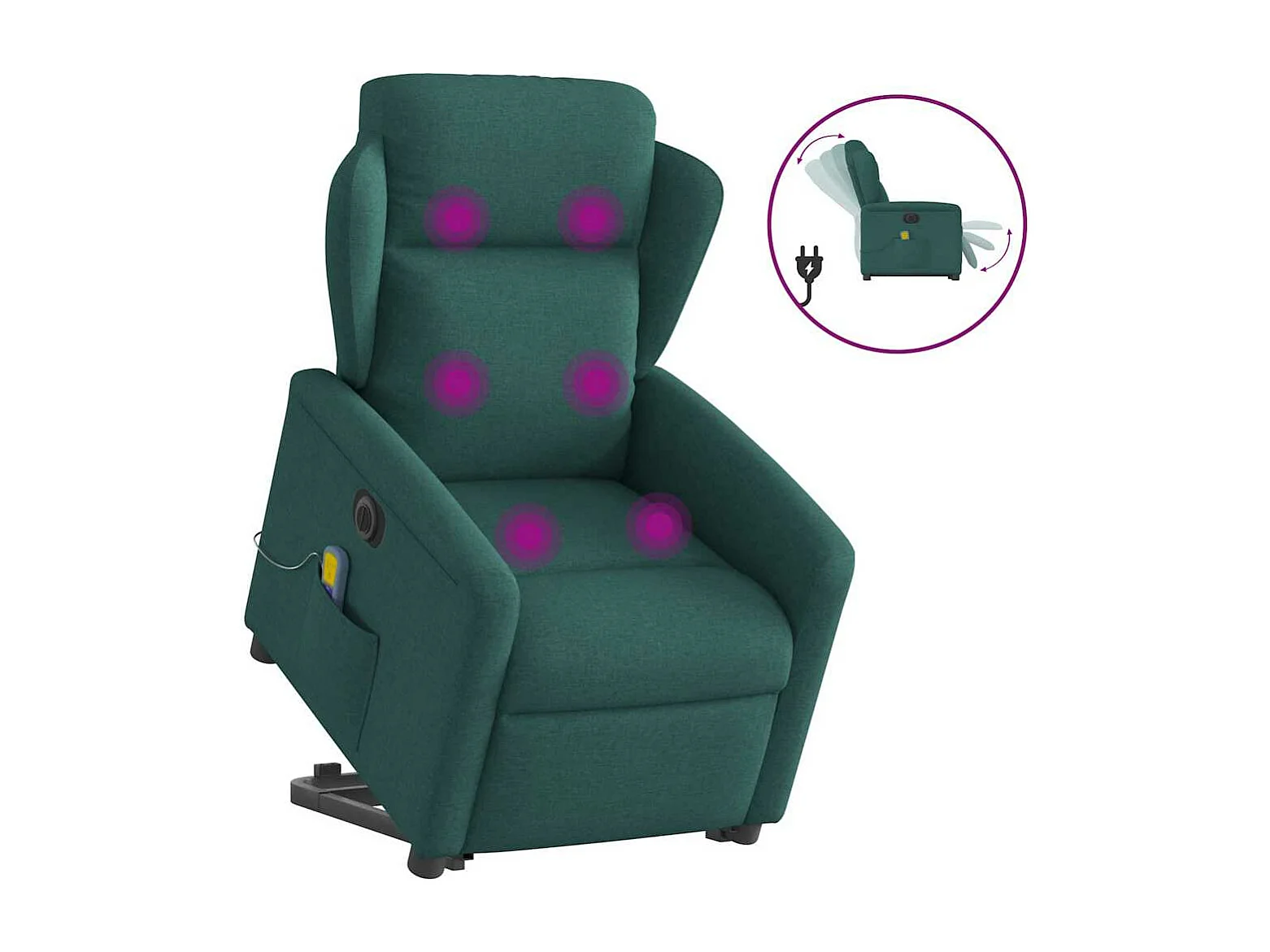 Sillón de masaje eléctrico reclinable de tela verde oscuro