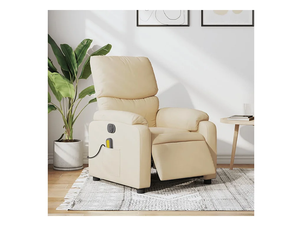 Sillón reclinable de masaje con reposapiés tela color crema YOE84989
