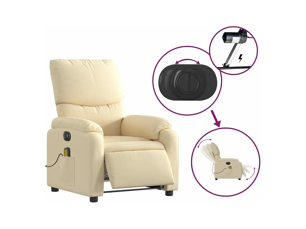 Sillón reclinable de masaje eléctrico tela color crema YOE72787
