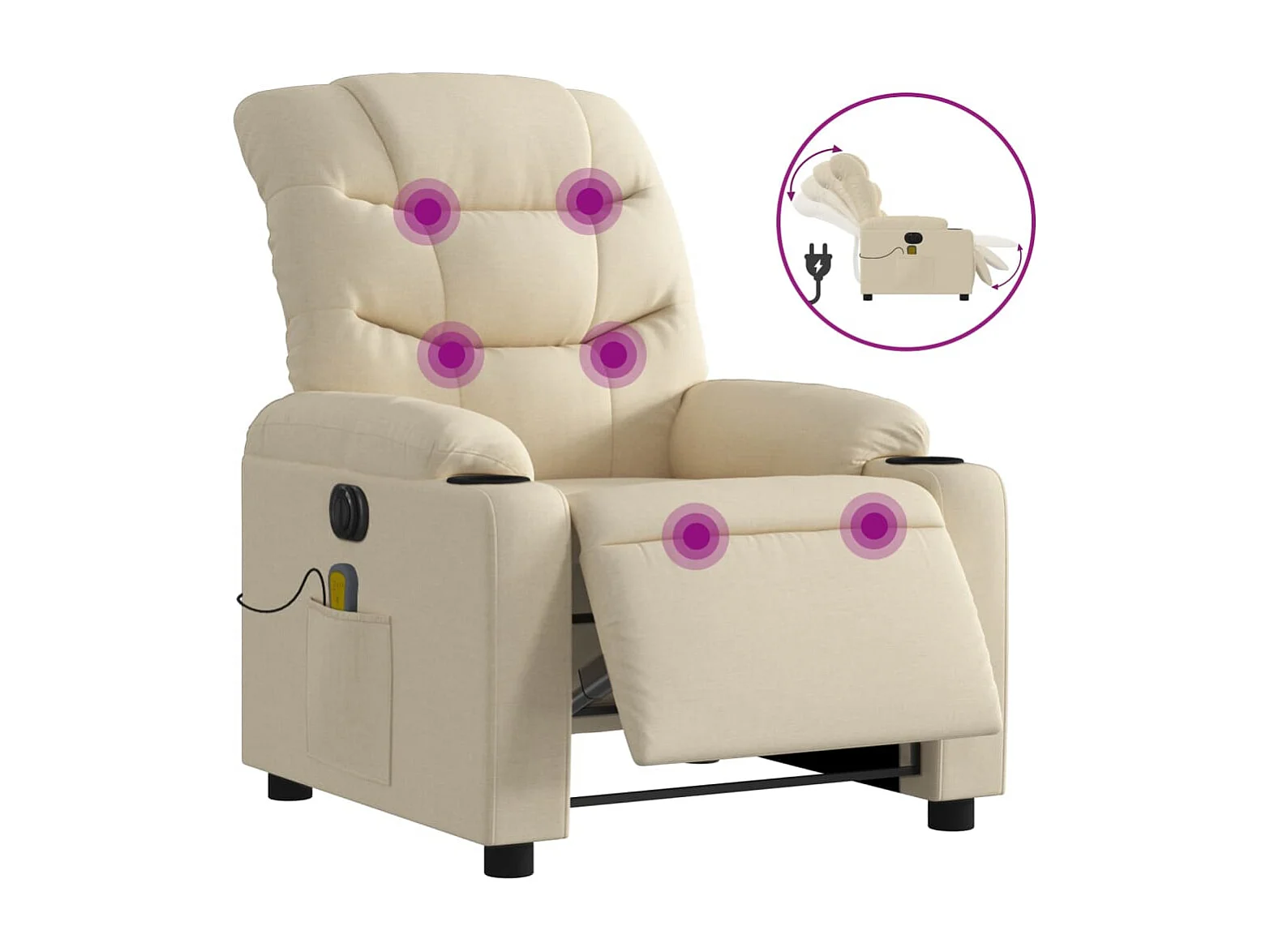 Sillón reclinable de masaje eléctrico tela color crema YOE72787