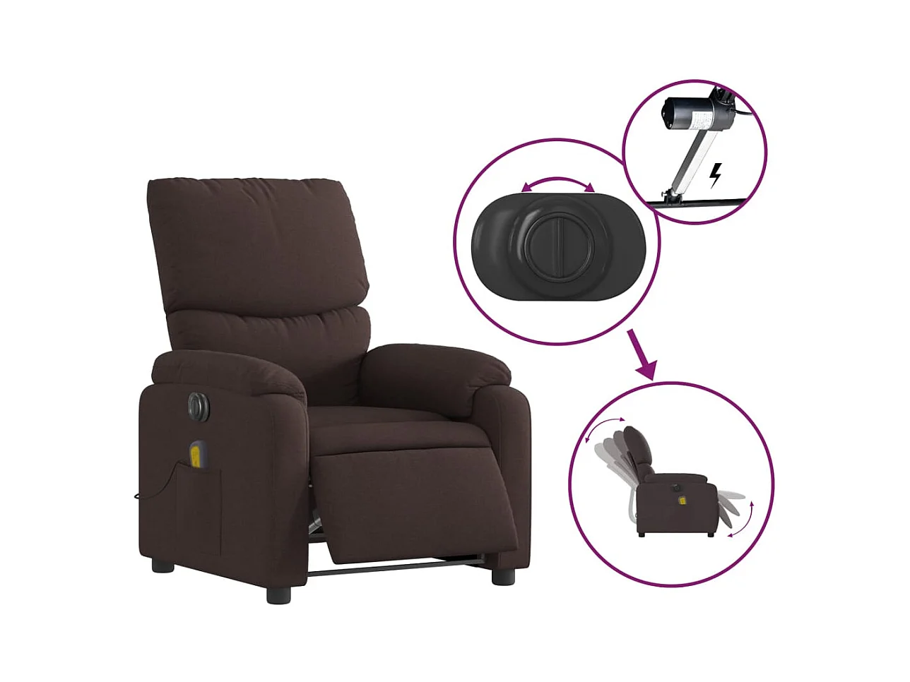 Sillón masaje eléctrico reclinable elevable tela marrón oscuro YOE71623