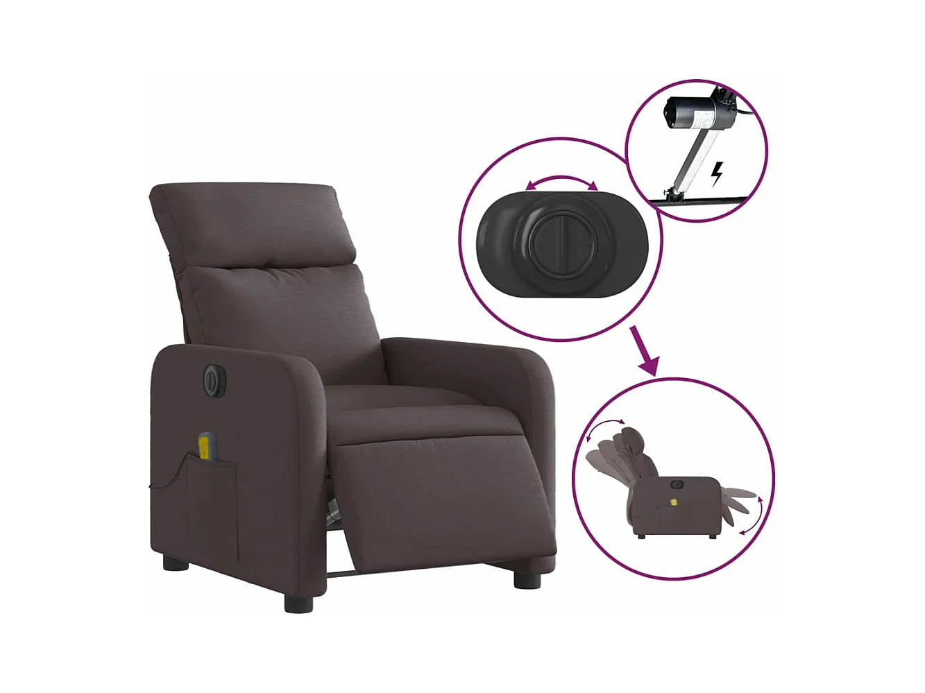 Sillón masaje eléctrico reclinable elevable tela marrón oscuro YOE62375