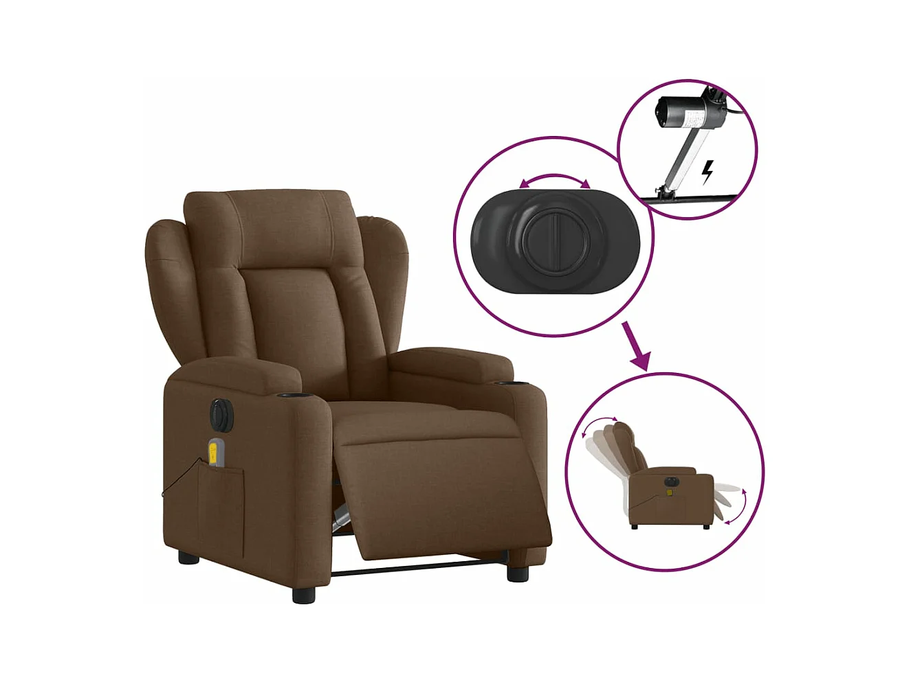 Sillón masaje eléctrico reclinable elevable tela marrón oscuro YOE62564