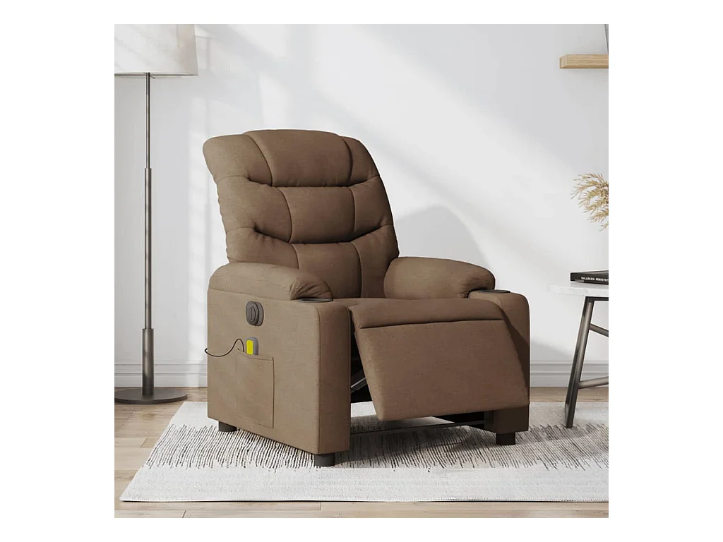 Sillón de masaje eléctrico reclinable elevable tela marrón YOE22979