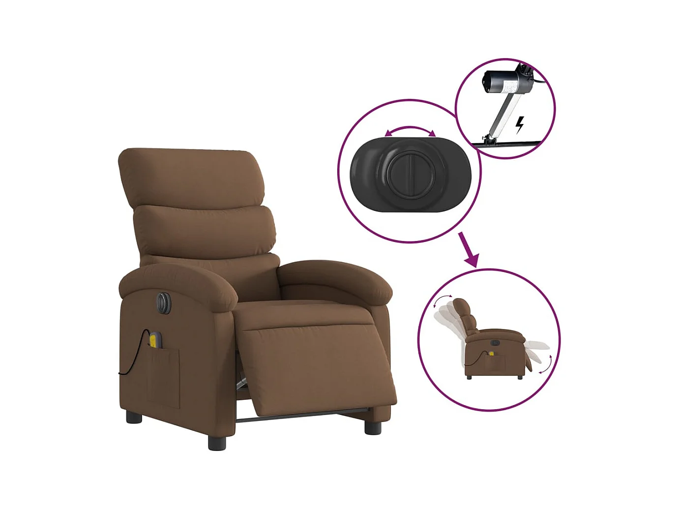 Sillón de masaje eléctrico reclinable elevable tela marrón YOE73508