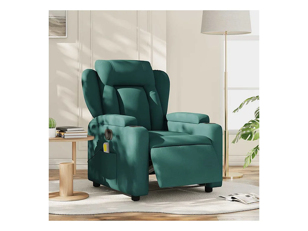 Sillón reclinable de masaje eléctrico tela verde oscuro
