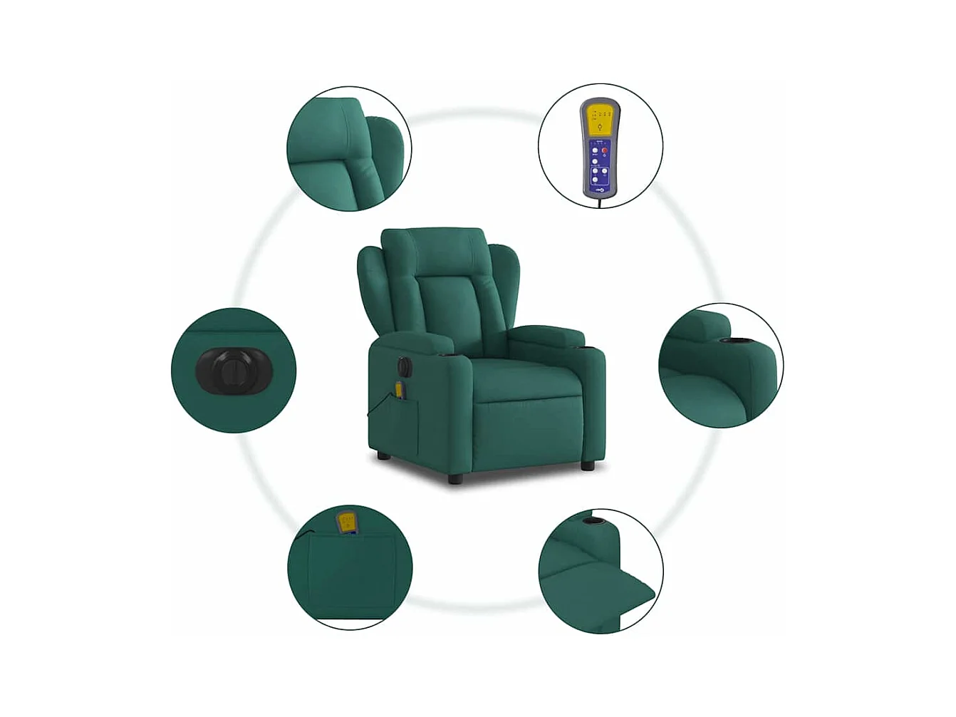 Sillón masaje eléctrico reclinable elevable tela verde oscuro