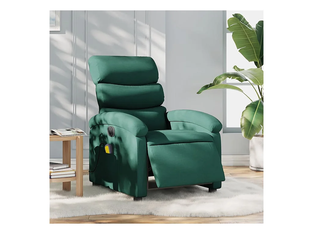 Sillón reclinable de masaje con reposapiés tela verde oscuro YOE83124