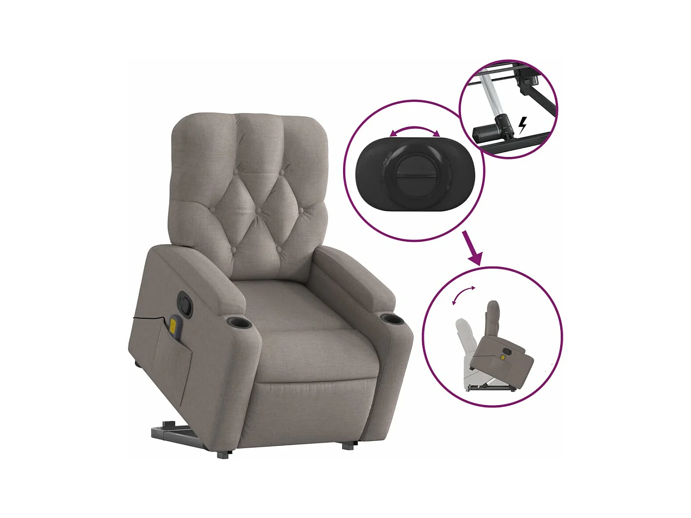 Sillón reclinable de masaje elevable tela gris taupé YOE76767