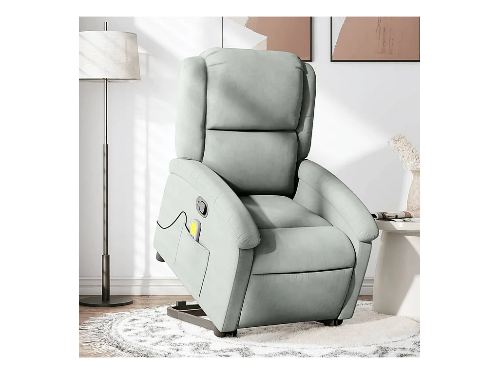 Sillón reclinable de masaje elevable terciopelo gris claro YOE27789