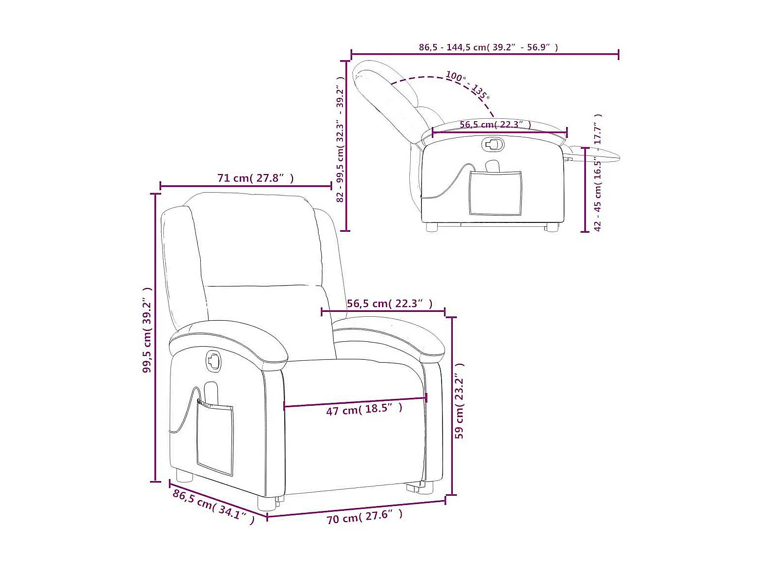 Sillón reclinable de masaje elevable terciopelo rojo tinto