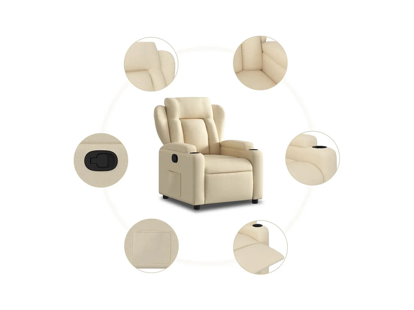 Sillón reclinable elevable de tela color crema YOE63861