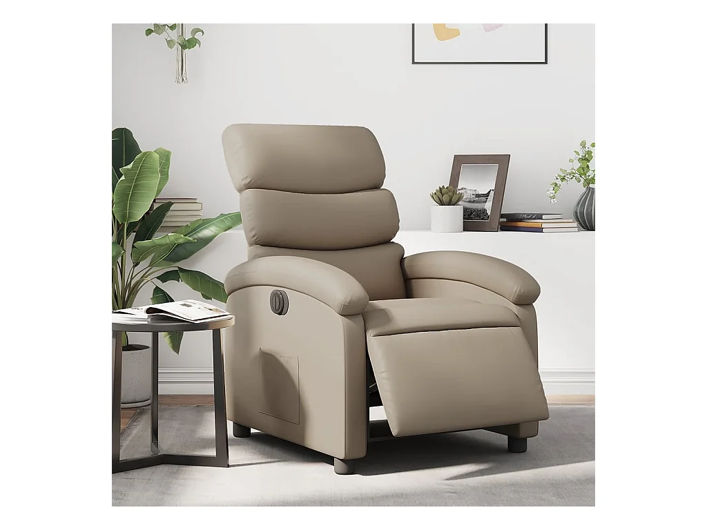 Sillón reclinable eléctrico de cuero sintético color capuchino YOE54293