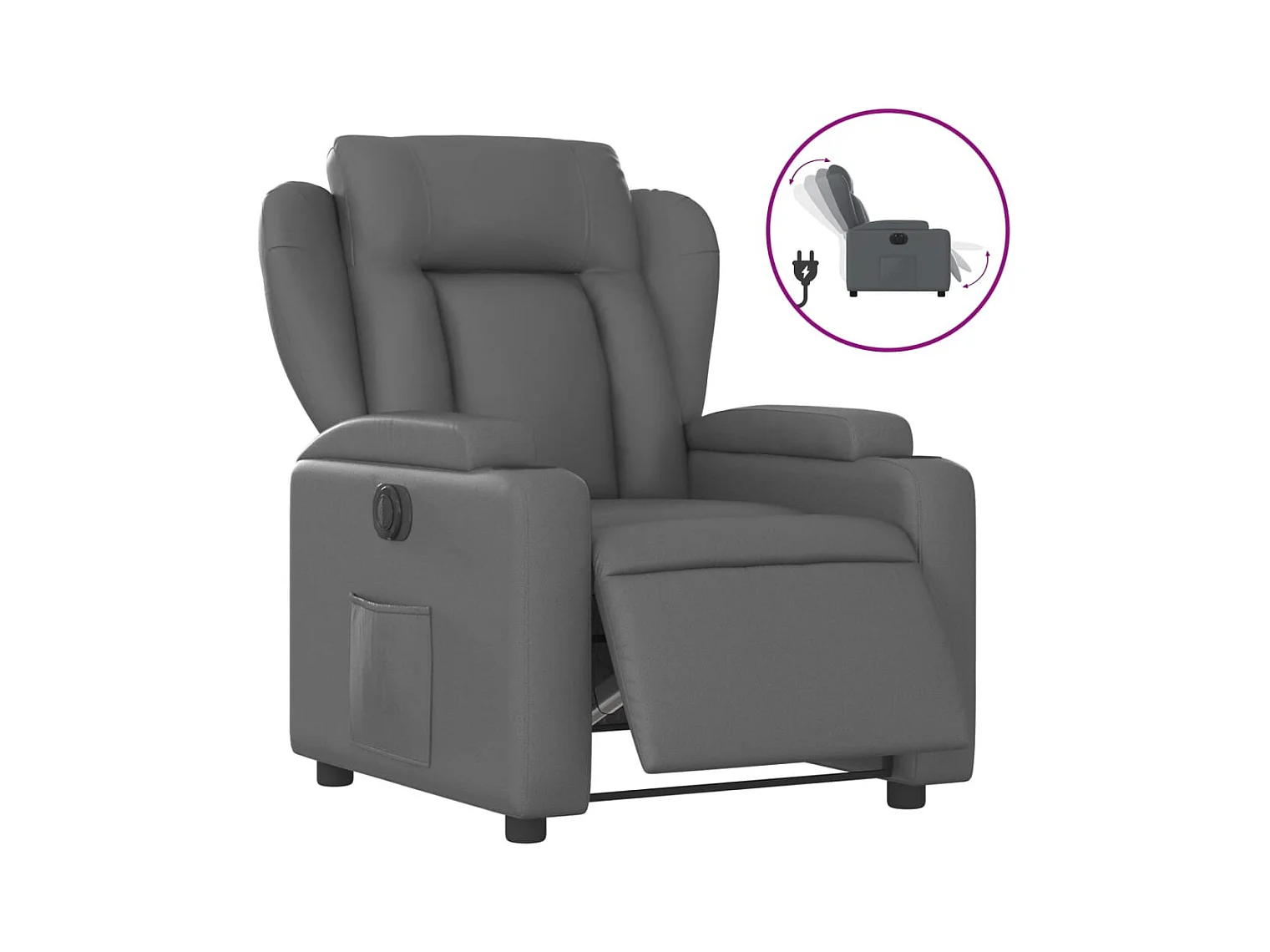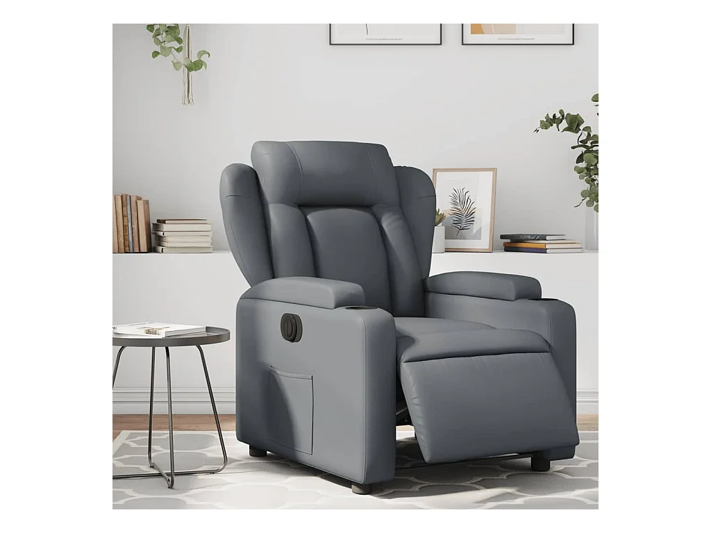 Sillón reclinable eléctrico de cuero sintético gris
