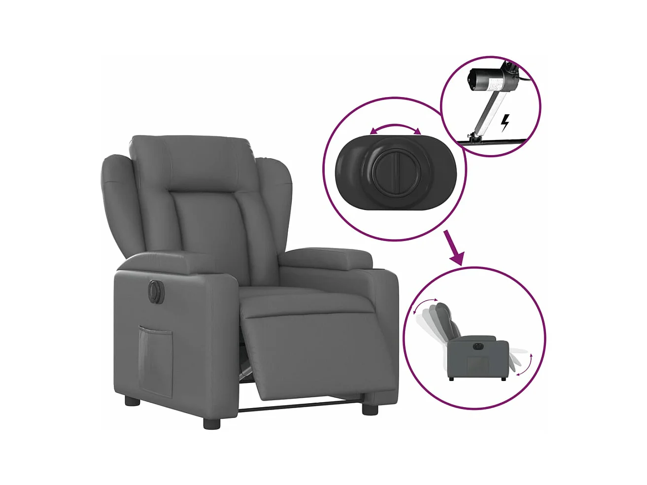 Sillón reclinable eléctrico de cuero sintético gris YOE58498