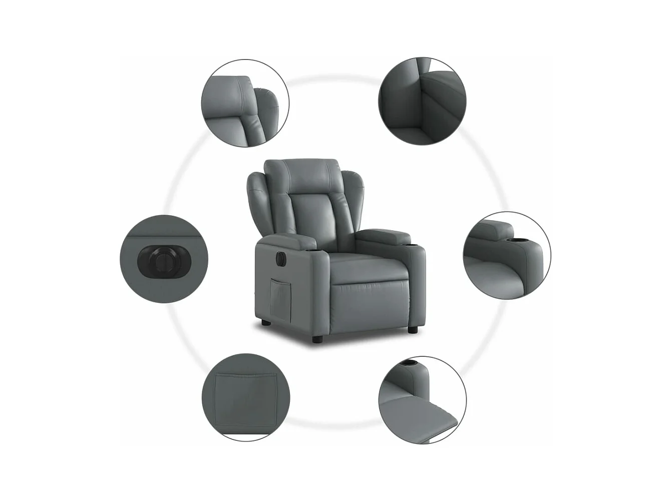 Sillón reclinable eléctrico de cuero sintético gris YOE98829