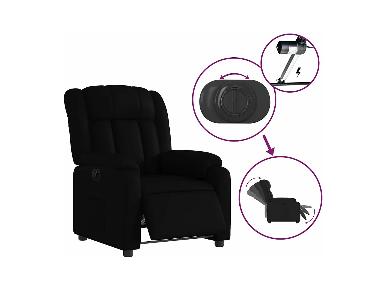 Sillón reclinable elevable eléctrico de cuero sintético negro
