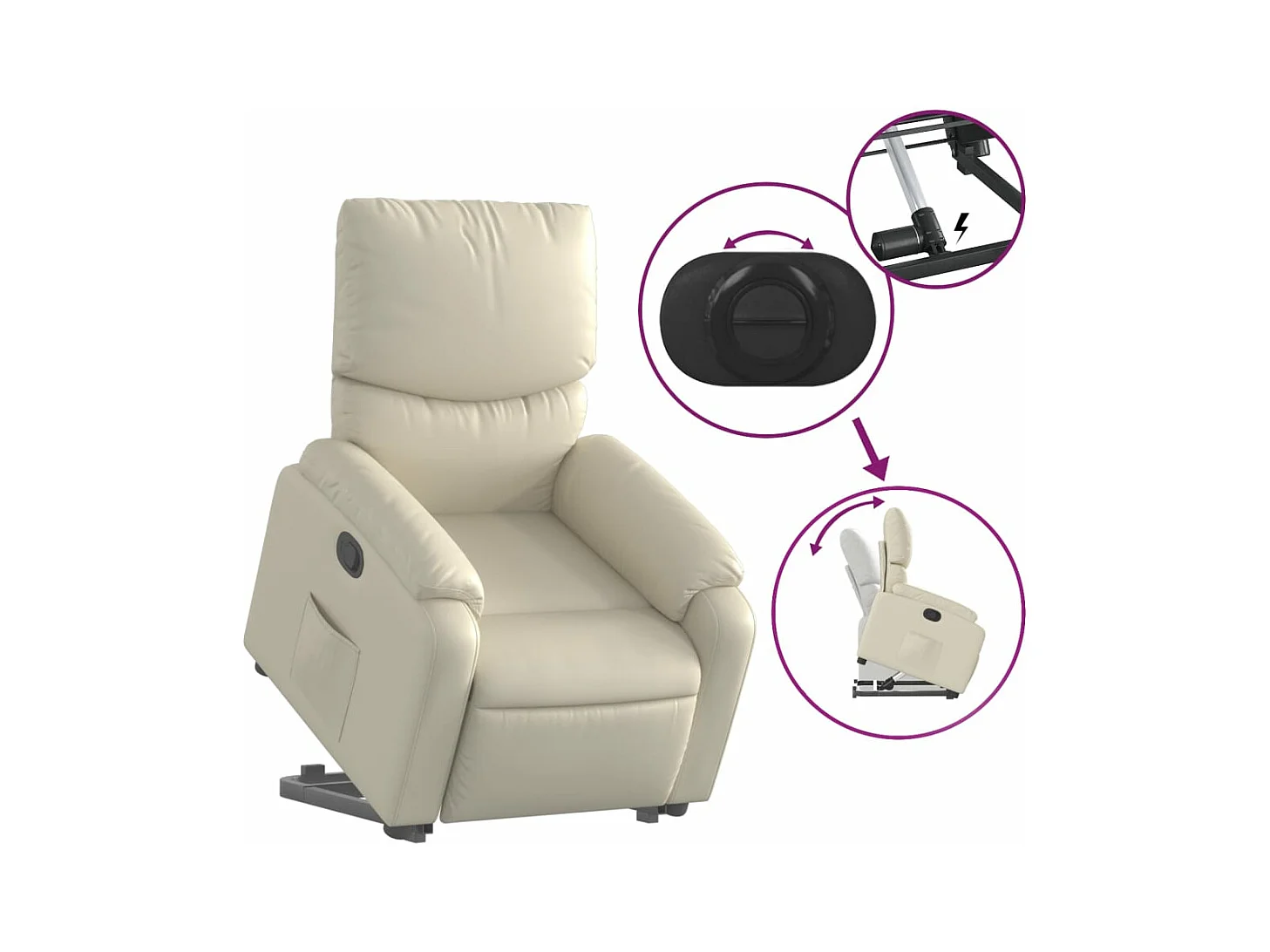 Sillón reclinable elevable cuero artificial color crema YOE98467
