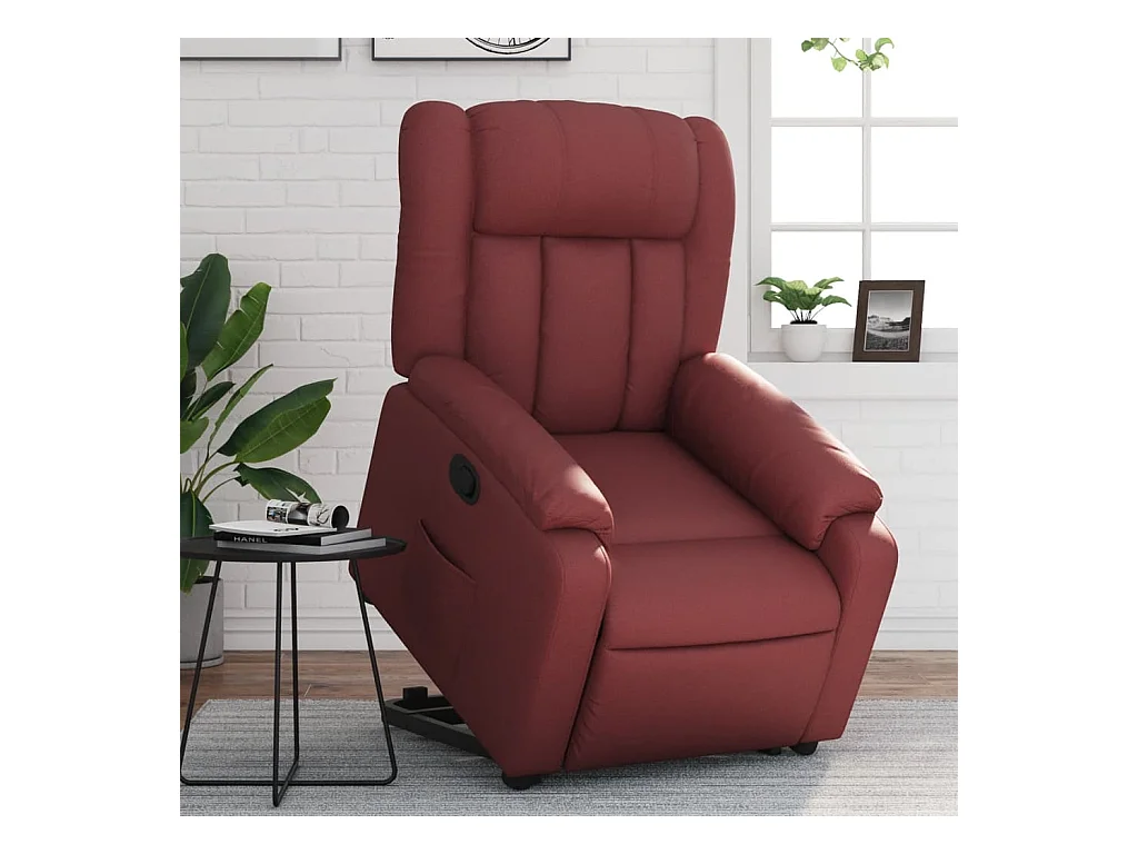 Sillón reclinable elevable cuero artificial rojo tinto YOE24319