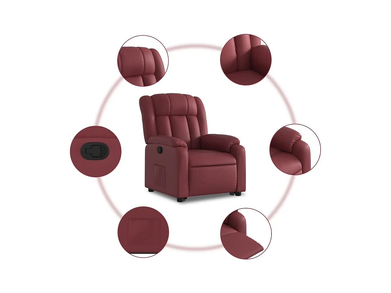 Sillón reclinable de cuero sintético rojo tinto YOE23492