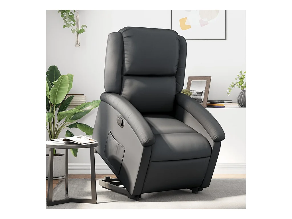 Sillón reclinable elevable cuero auténtico negro