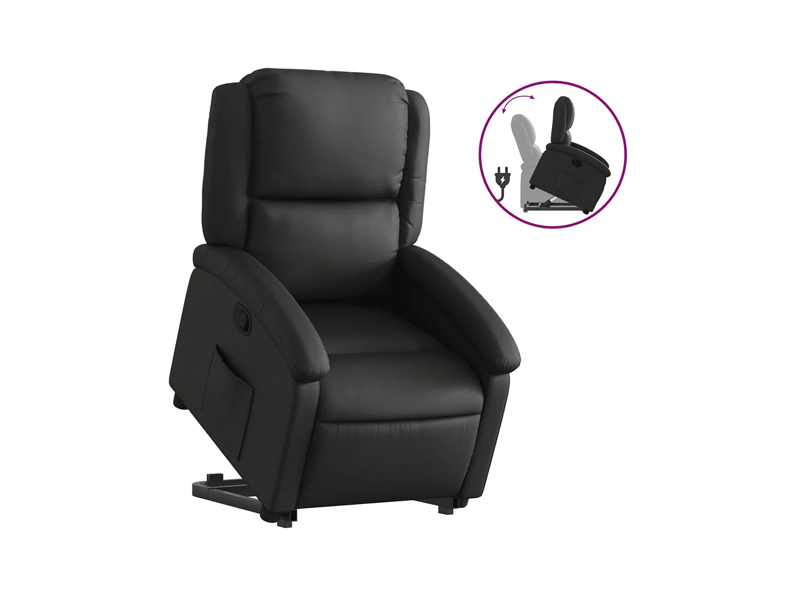 Sillón reclinable de masaje elevable cuero auténtico negro