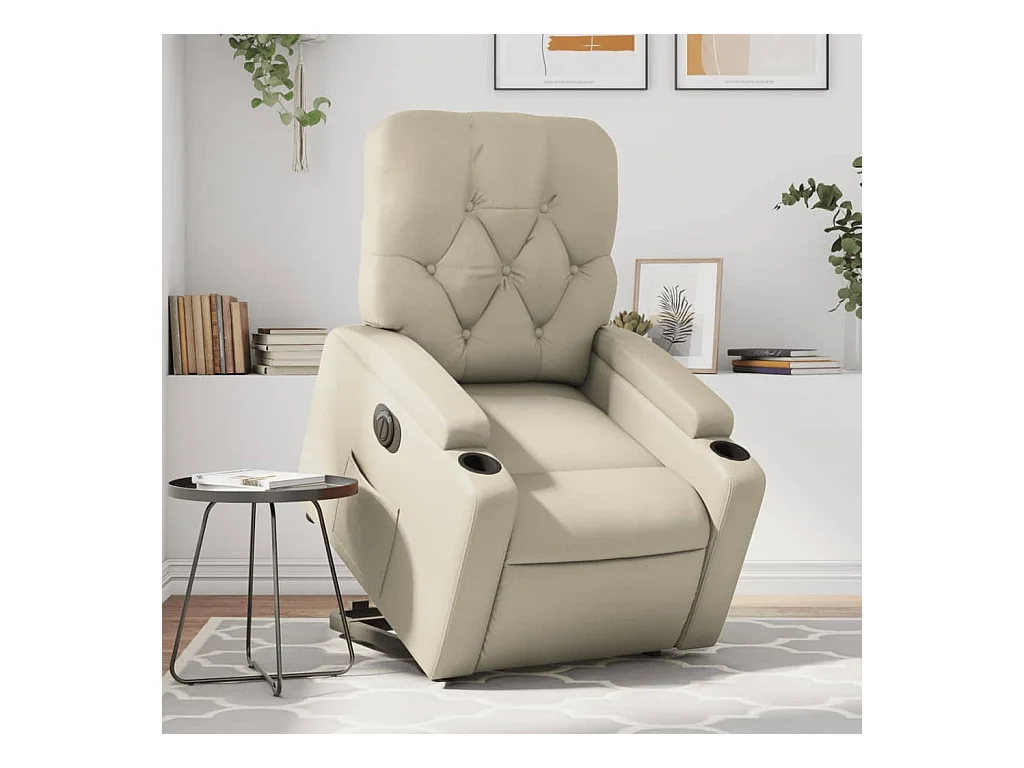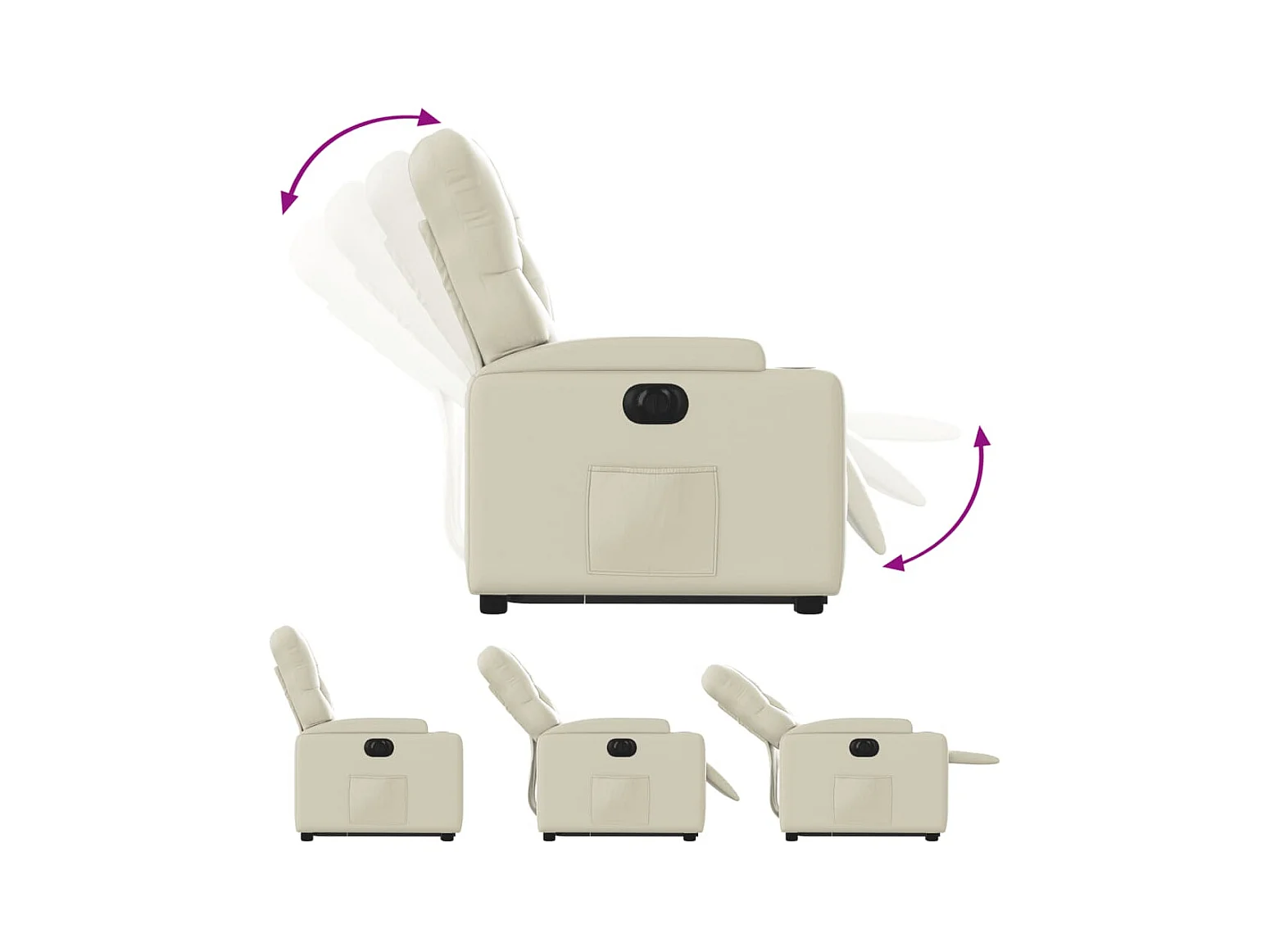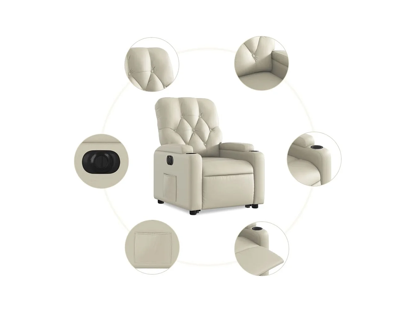 Sillón reclinable elevable eléctrico de cuero sintético crema