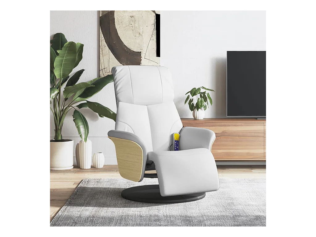 Tumbona de masaje reclinable de cuero sintético blanco