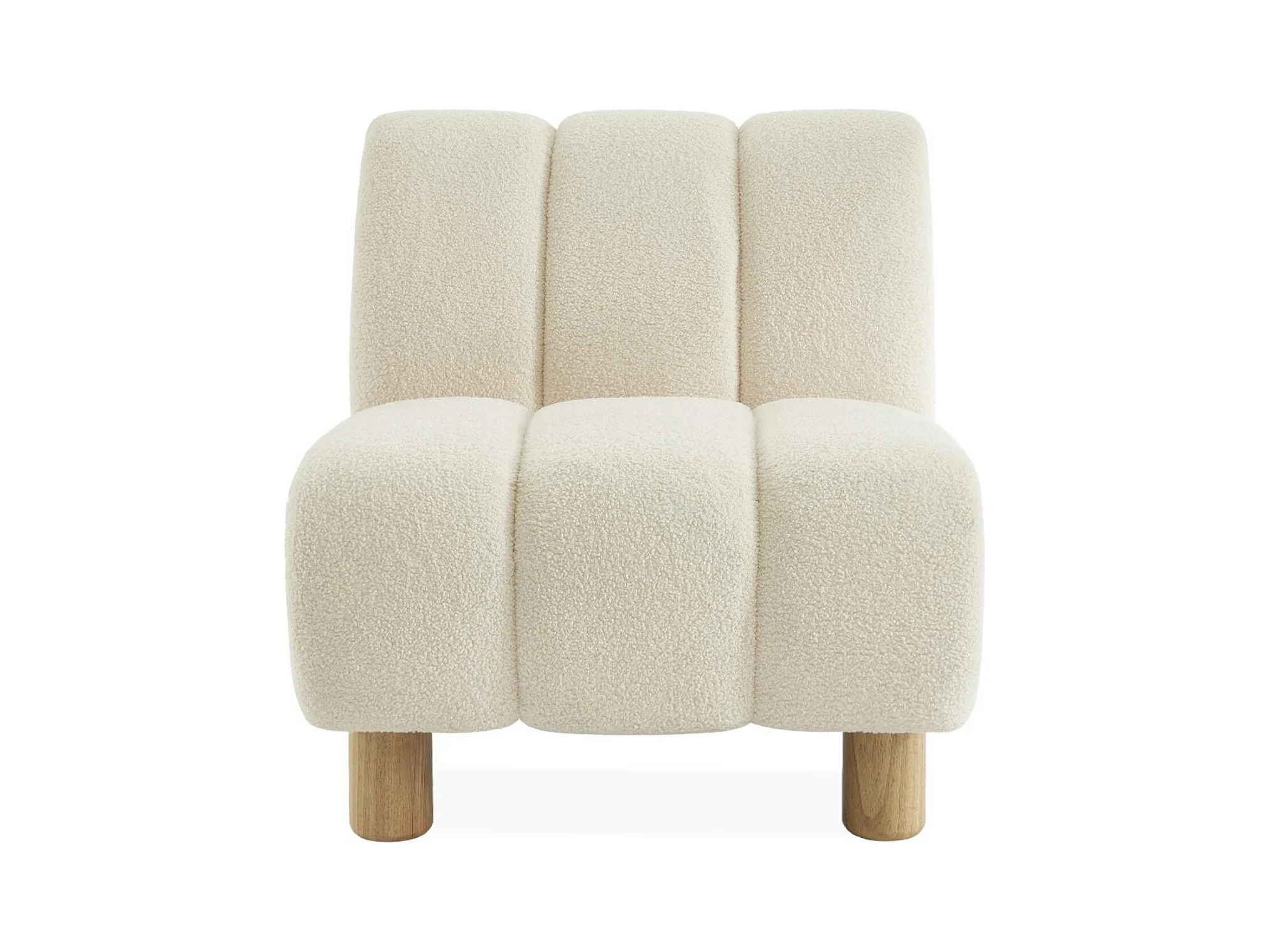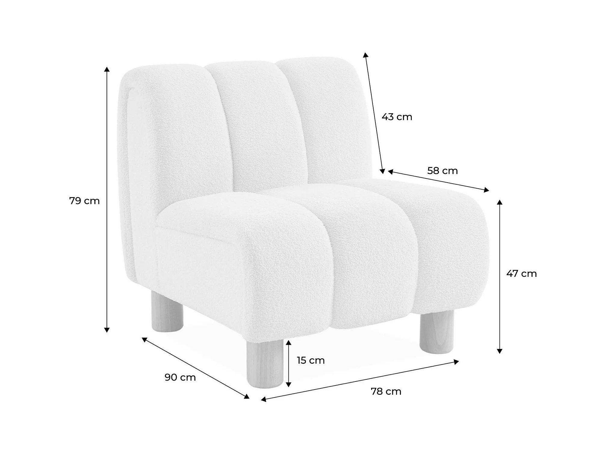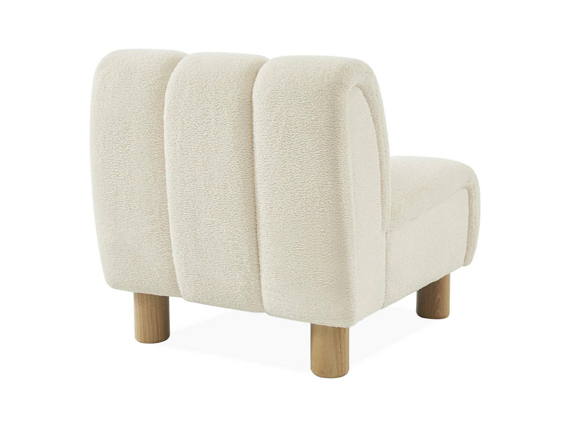 Sillón escandinavo de madera y tela de borreguito texturizado beige