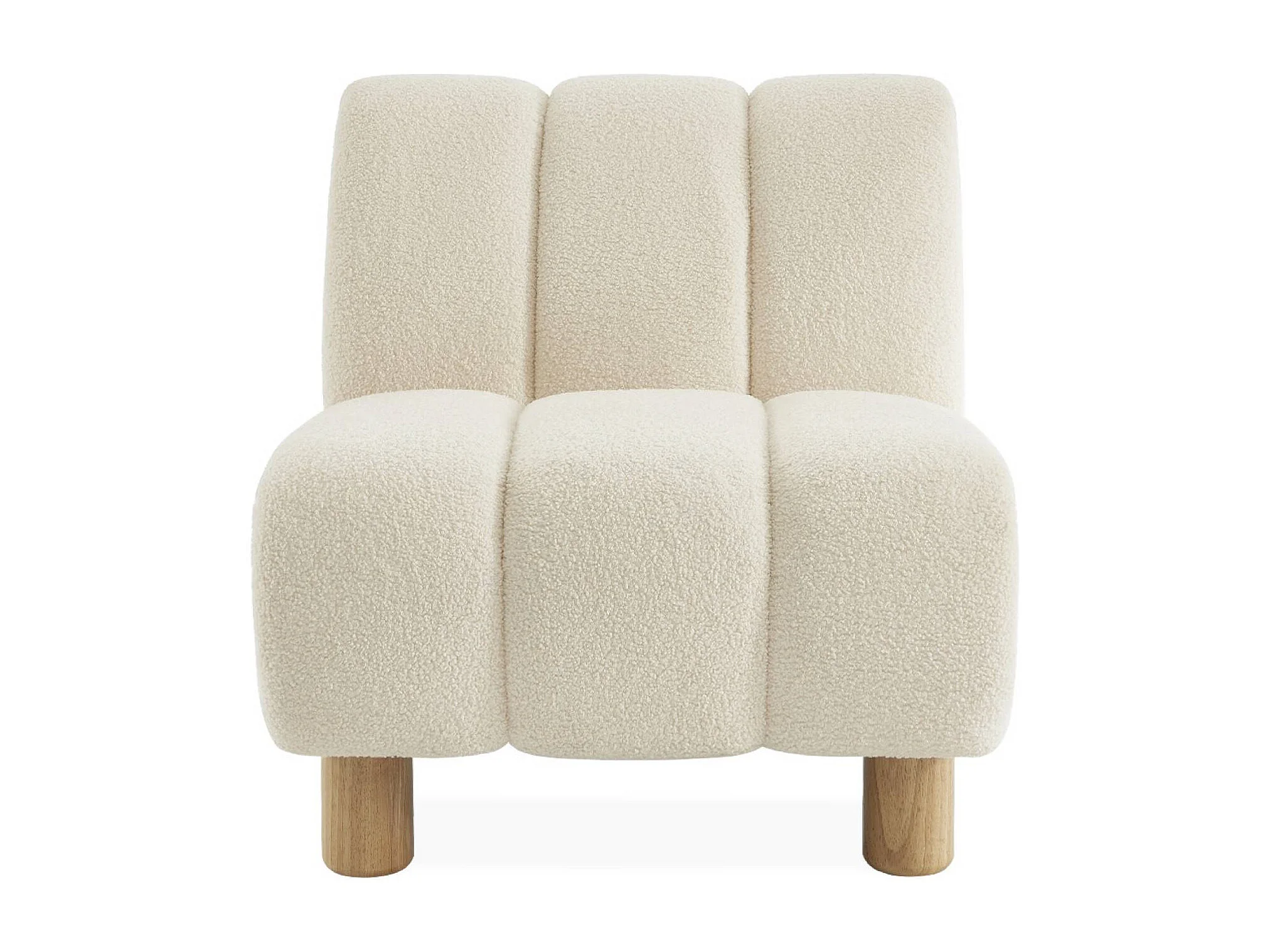 Sillón relax pies redondeados madera de hevea y borreguito crema