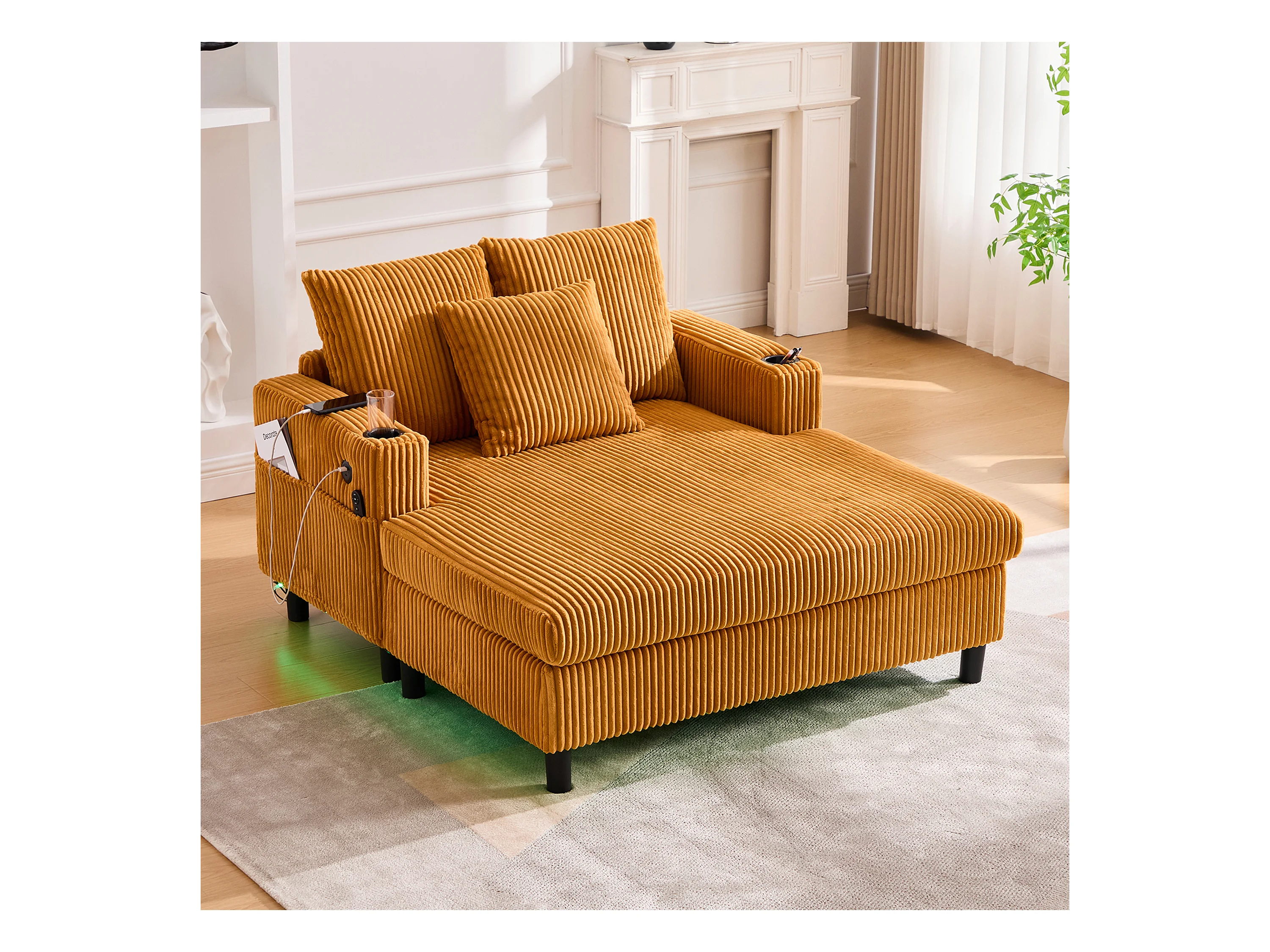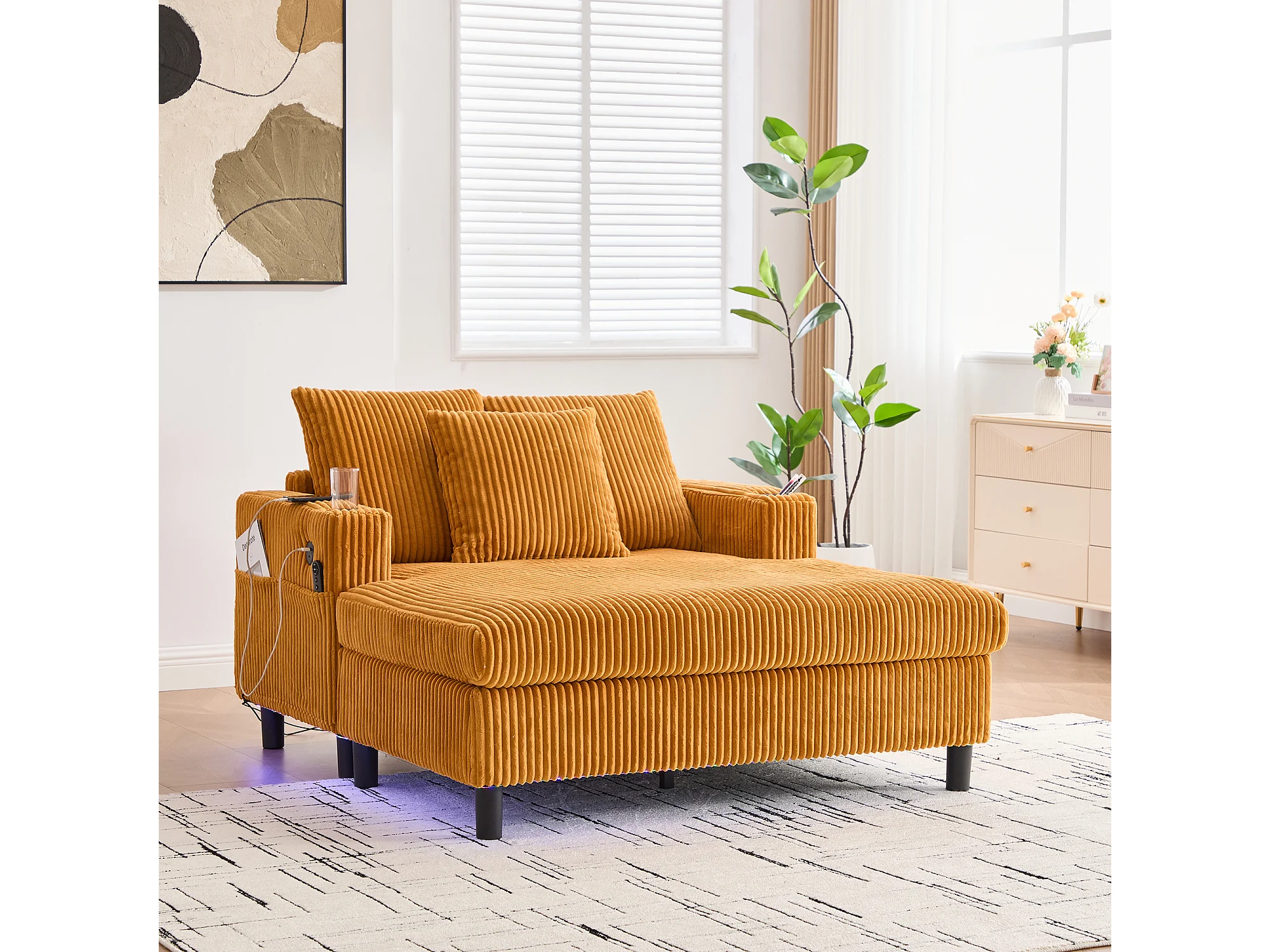 Sillón relajante XXL de terciopelo con LED, puerto USB y portavasos para salón y dormitorio, gris