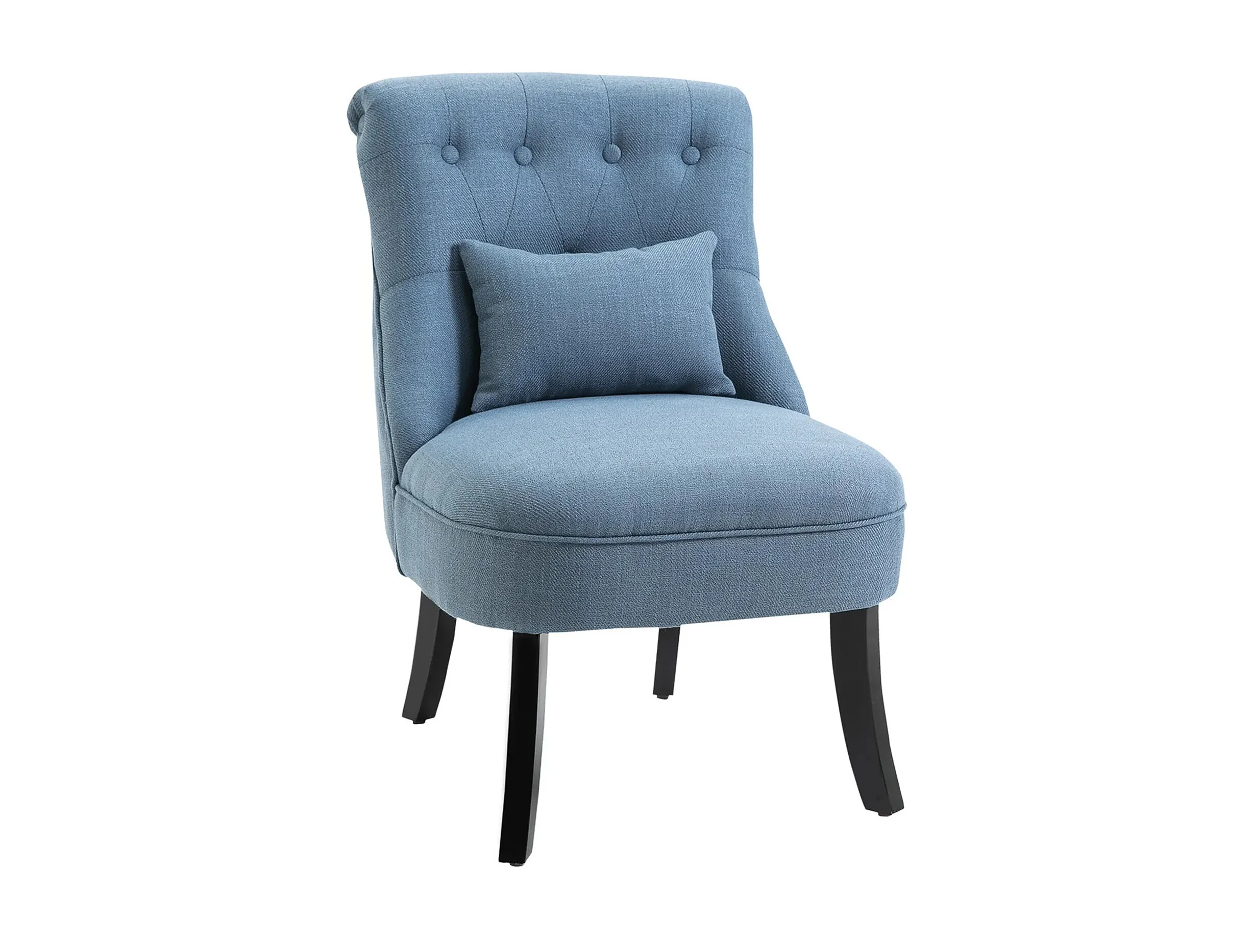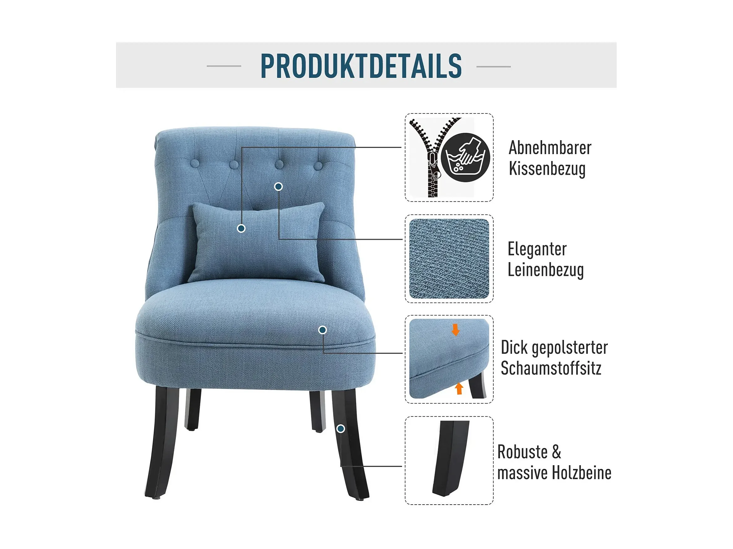 Sillón relax con cojín de respaldo de lino azul para salón dormitorio 52,5x69x77 cm