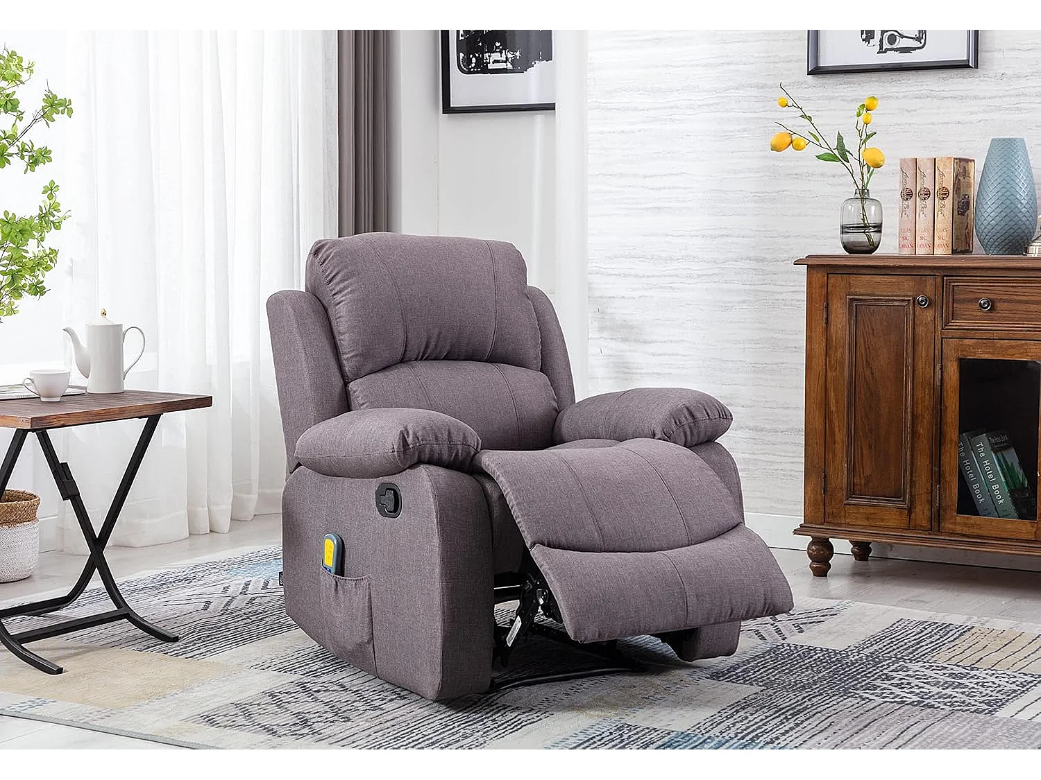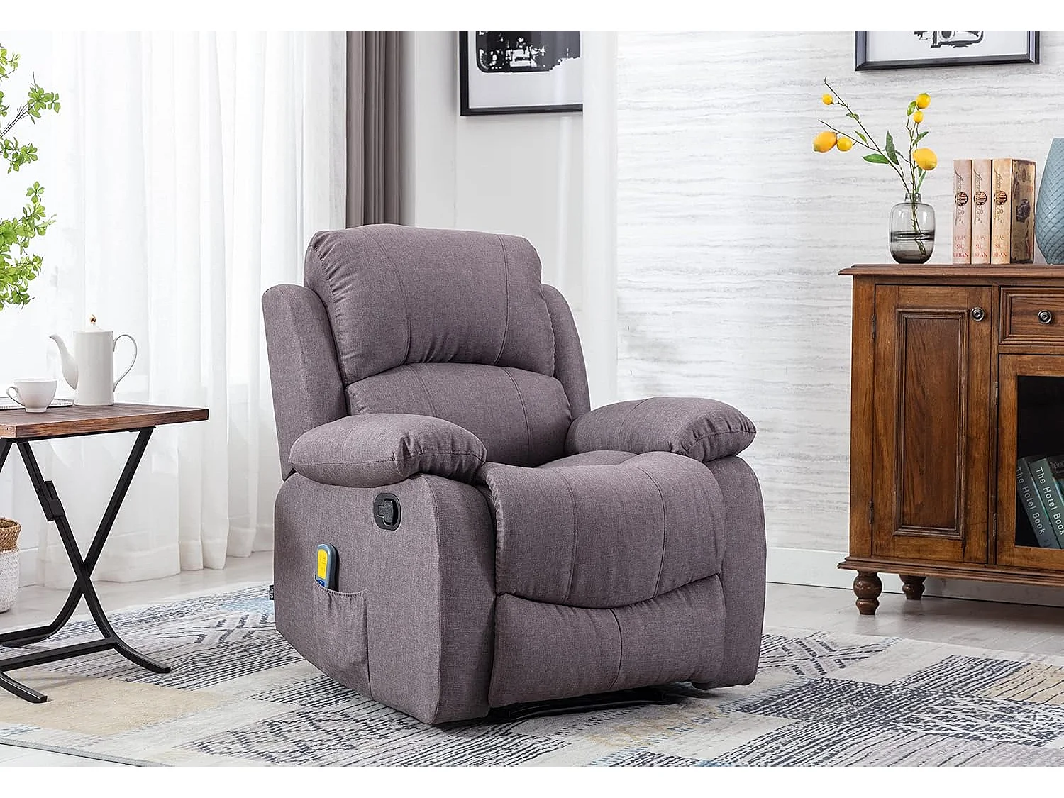 Sillón Relax con Reclinación Manual (Sistema Pared Cero), Masaje Y Termoterapia. Marrón
