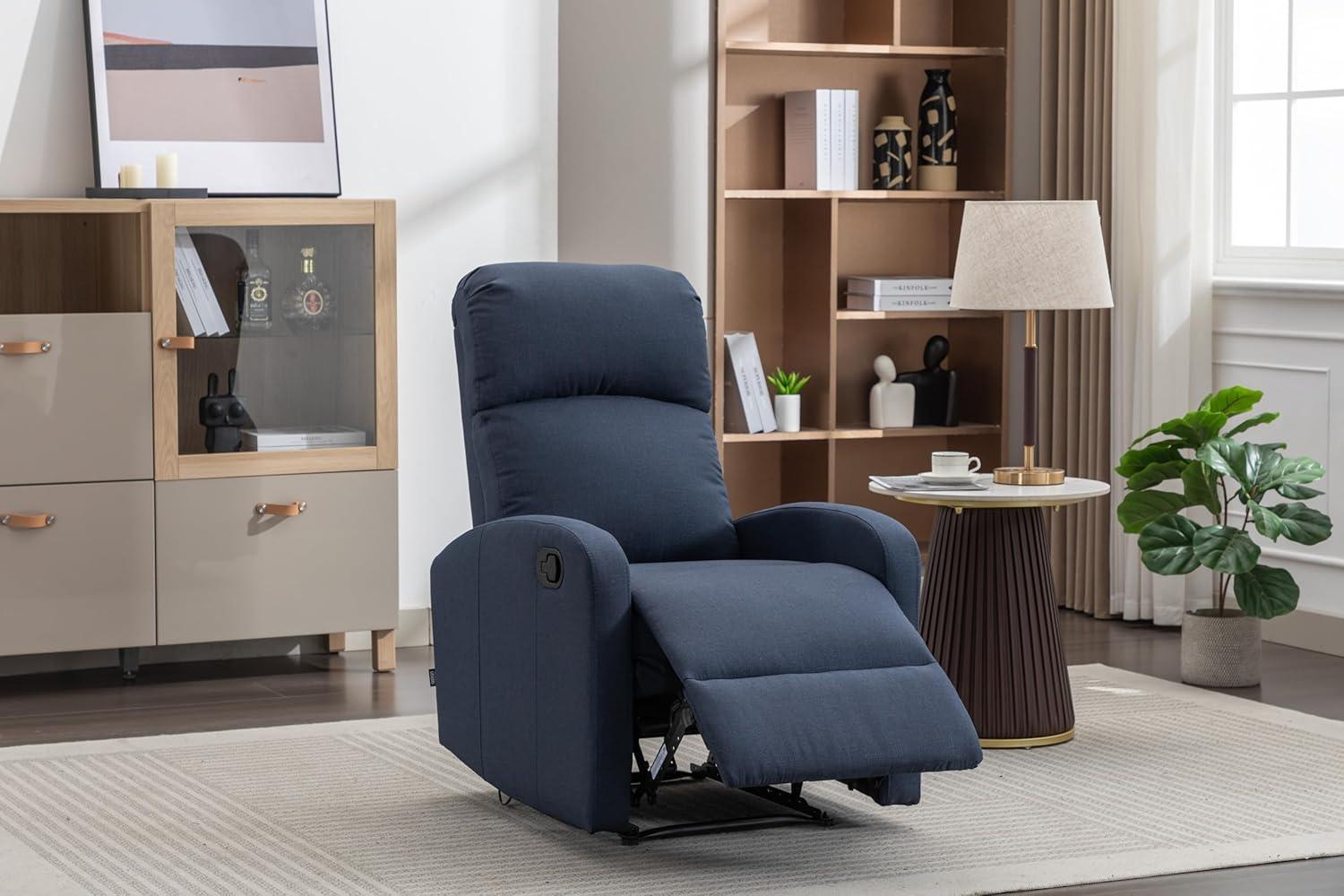 Sillón Relax con Reclinación Manual, Tapizado en Tela, Modelo Premium, Azul Denim