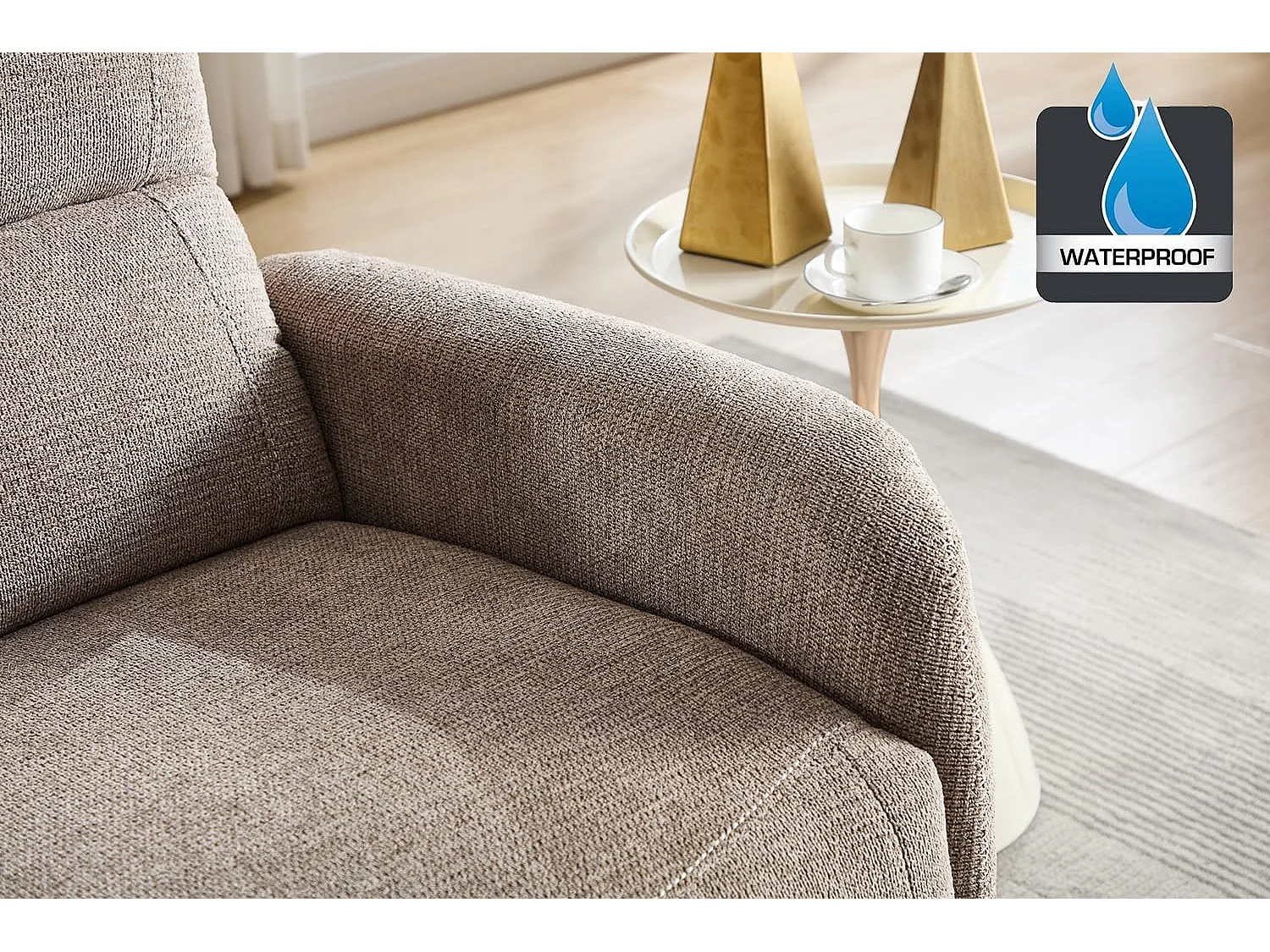 Sillón Relax con Reclinación Manual, Tejido Waterproof, Modelo Duke, Marrón Grisáceo