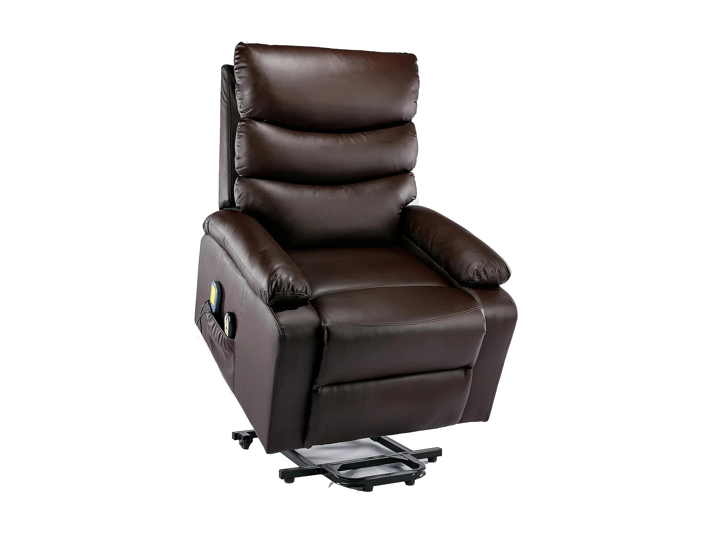 Sillón reclinable elevable eléctrico de cuero sintético marrón