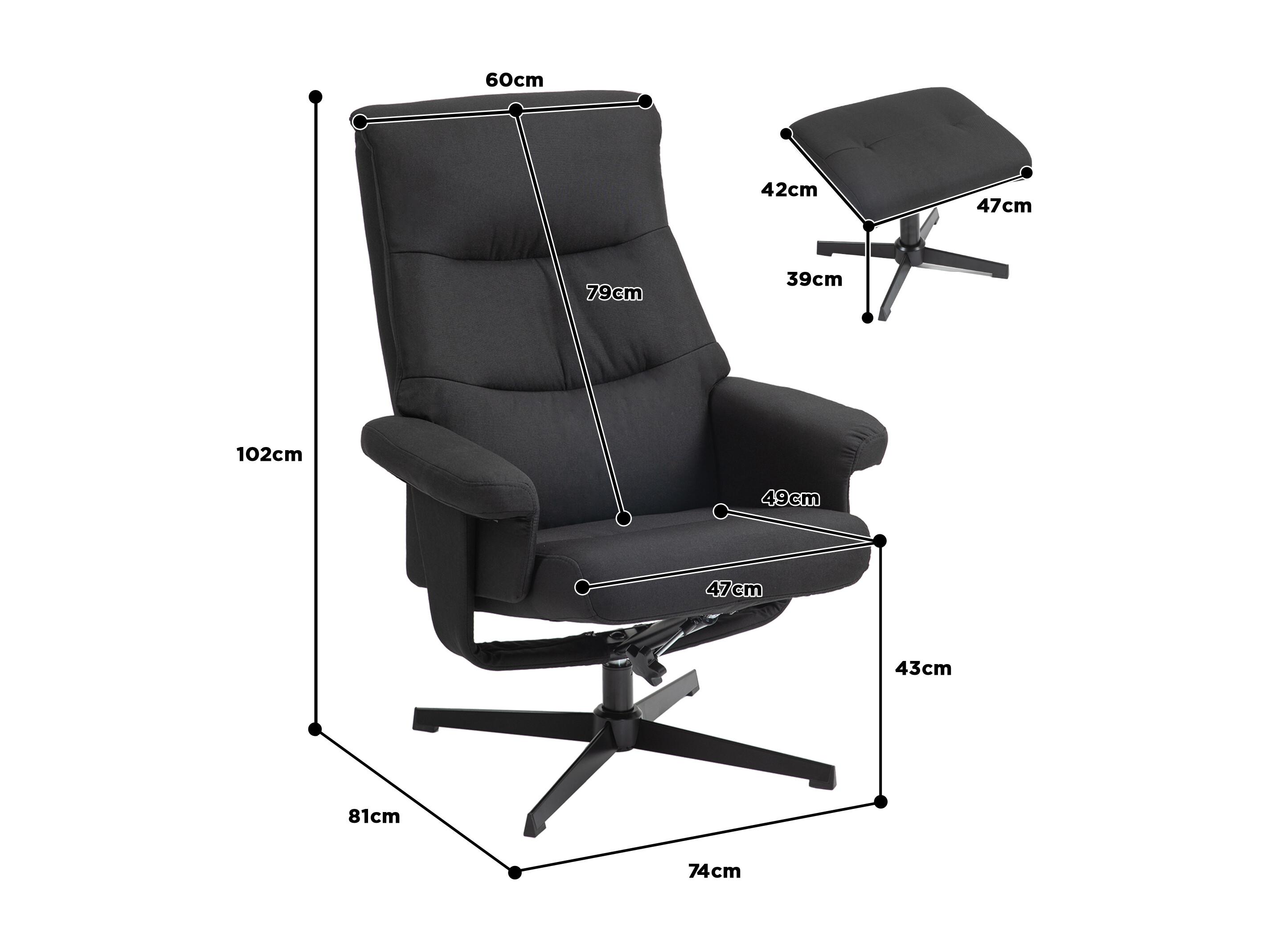 Sillón relax giratorio con otomana de terciopelo, reclinable 135° para salón, dormitorio, negro, 74x81x102 cm