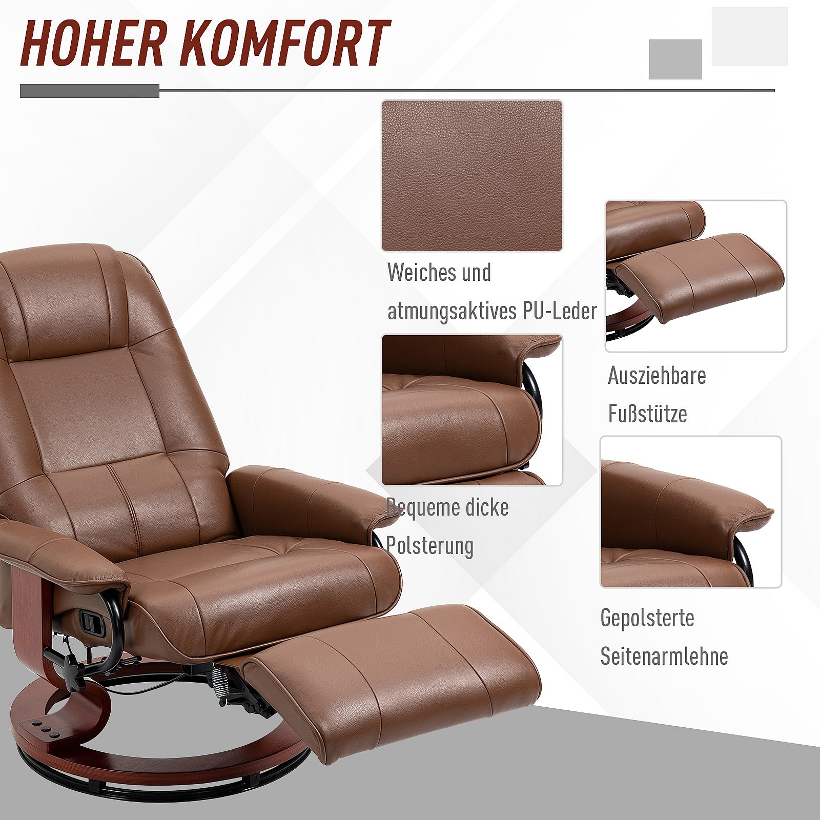 Sillón relax giratorio en piel sintética, reclinable 145° con reposapiés 78x87x100 cm