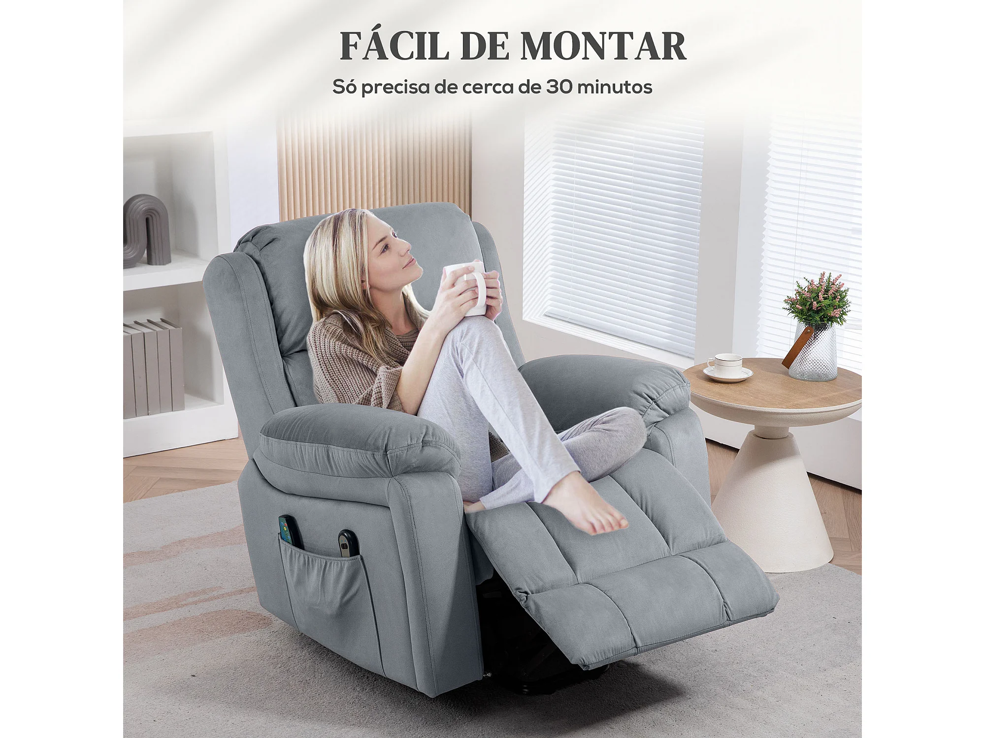 Sillón relax Leire Homcom eleva personas + masajeador + calefacción lumbar gris 103x90x95 cm