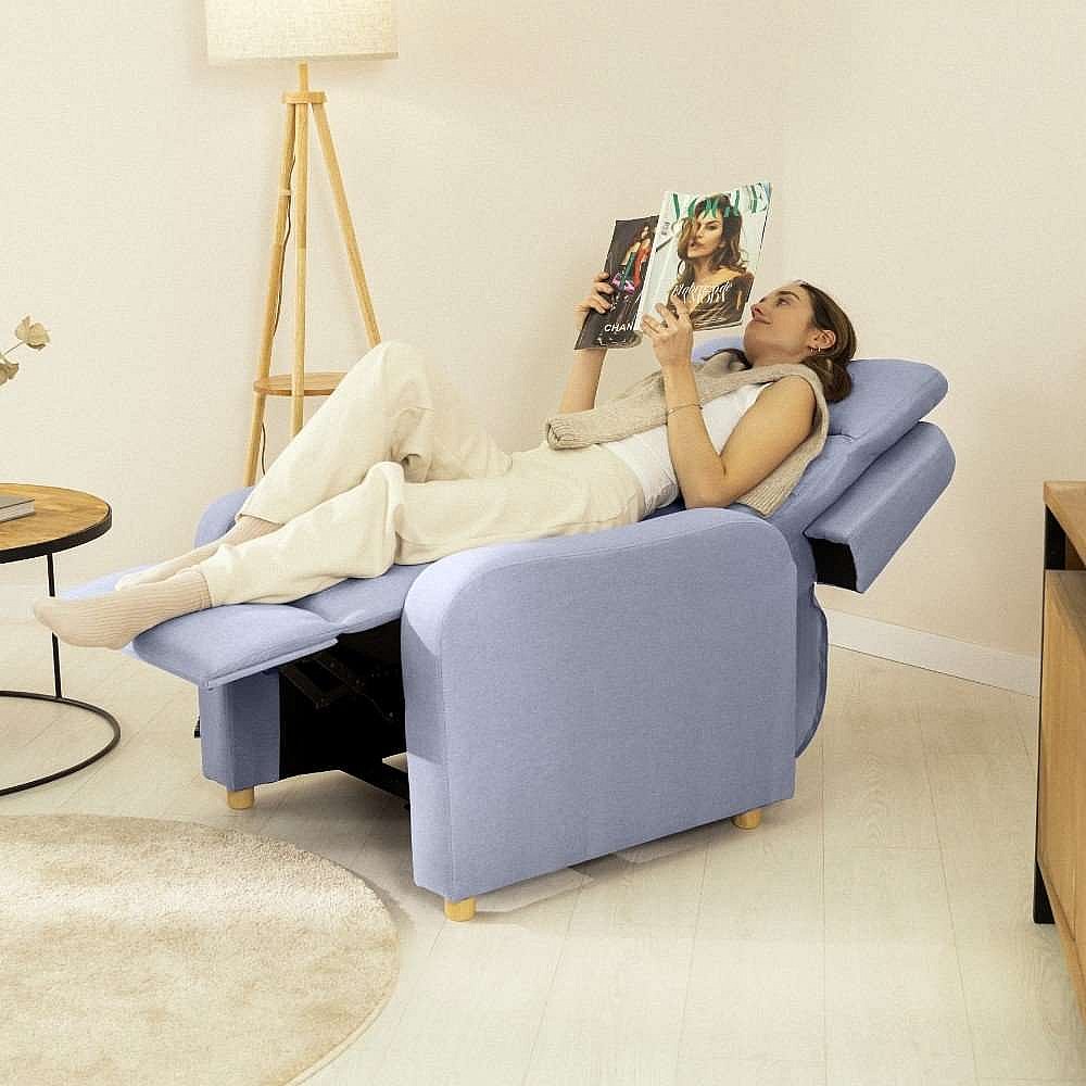 Sillón relax Marcelo Homcom reclinable sistema de elevación y mando a distancia azul 96x66x90 cm