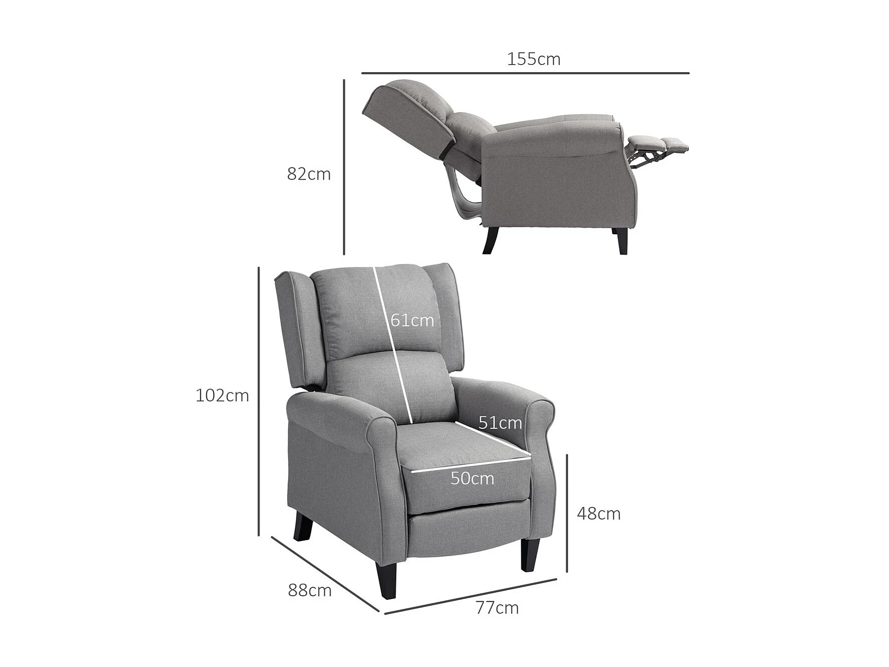 Sillón relax Petite Homcom reclinable gris 102x77x88 cm