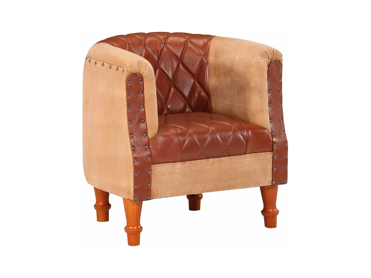 Sillón | Silla de cuero auténtico y madera maciza de mango marrón SHL6869