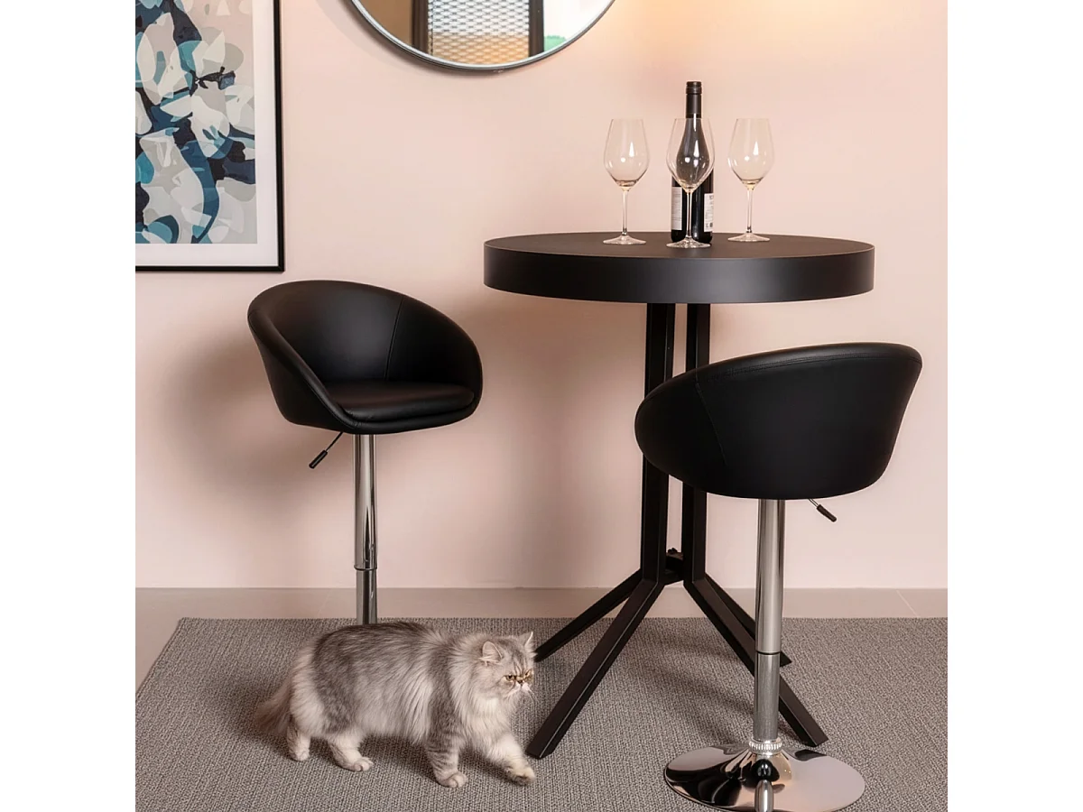 Sillón Taburete Giratorio Cuero Polipiel Diseño Moderno Austin - Negro