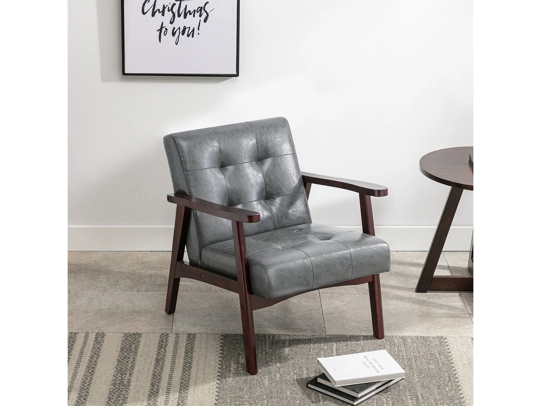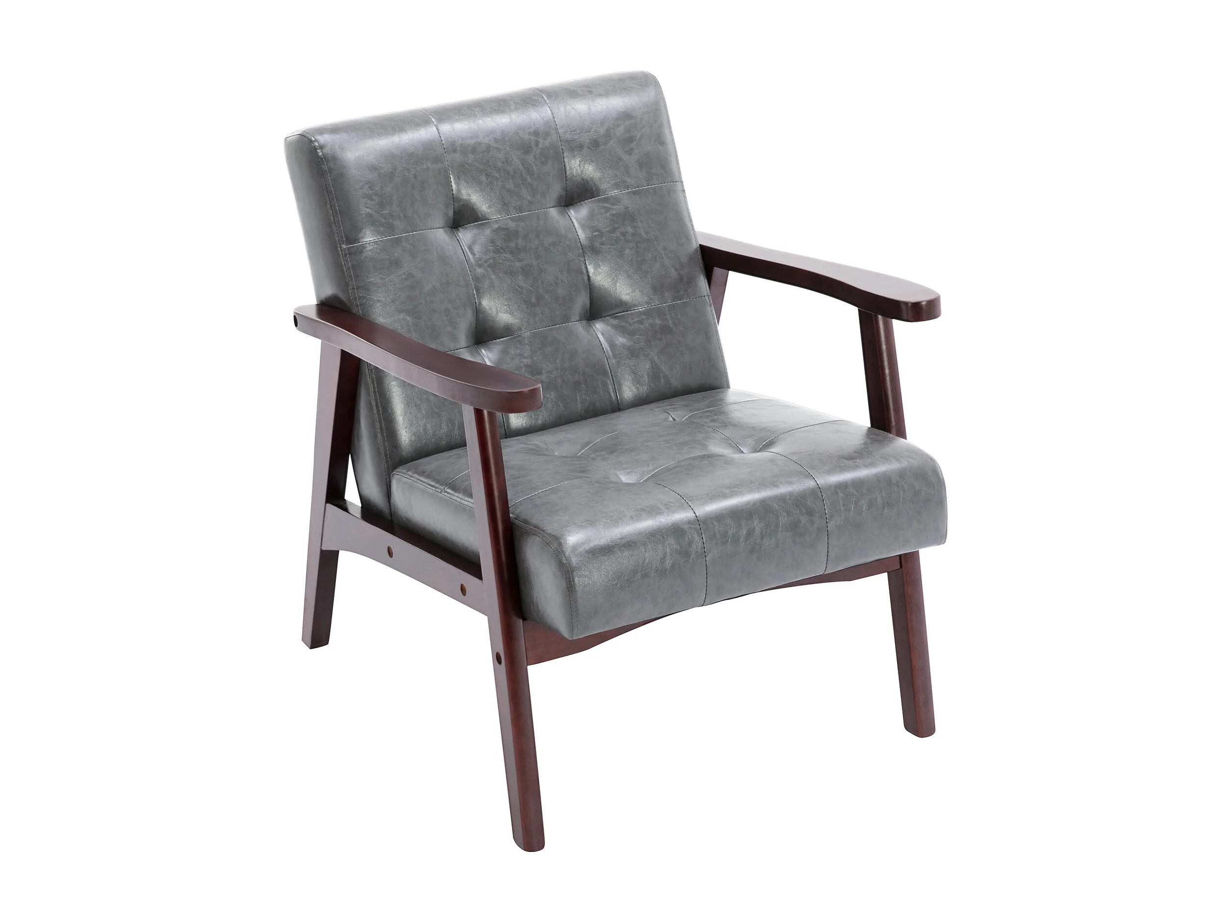Sillón de cuero artificial tapizado estilo vintage - Sillón de madera natural para oficina o dormitorio, azul