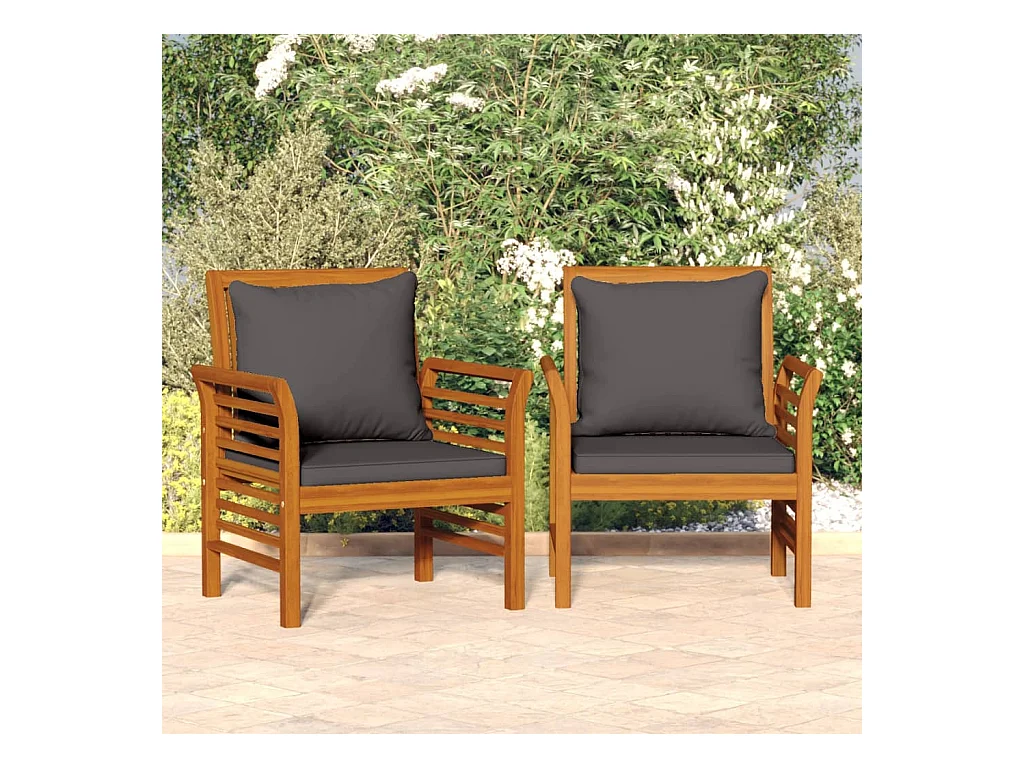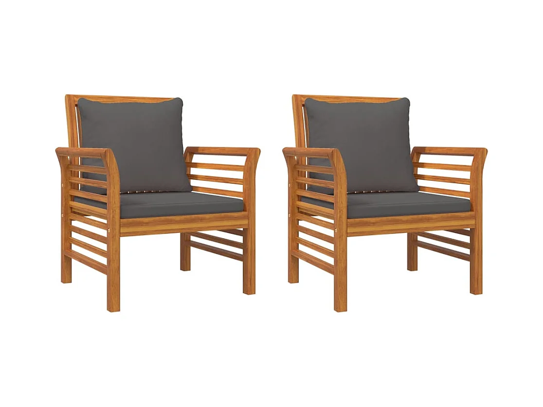 Sillones con cojines gris oscuro 2 unidades madera maciza de acacia