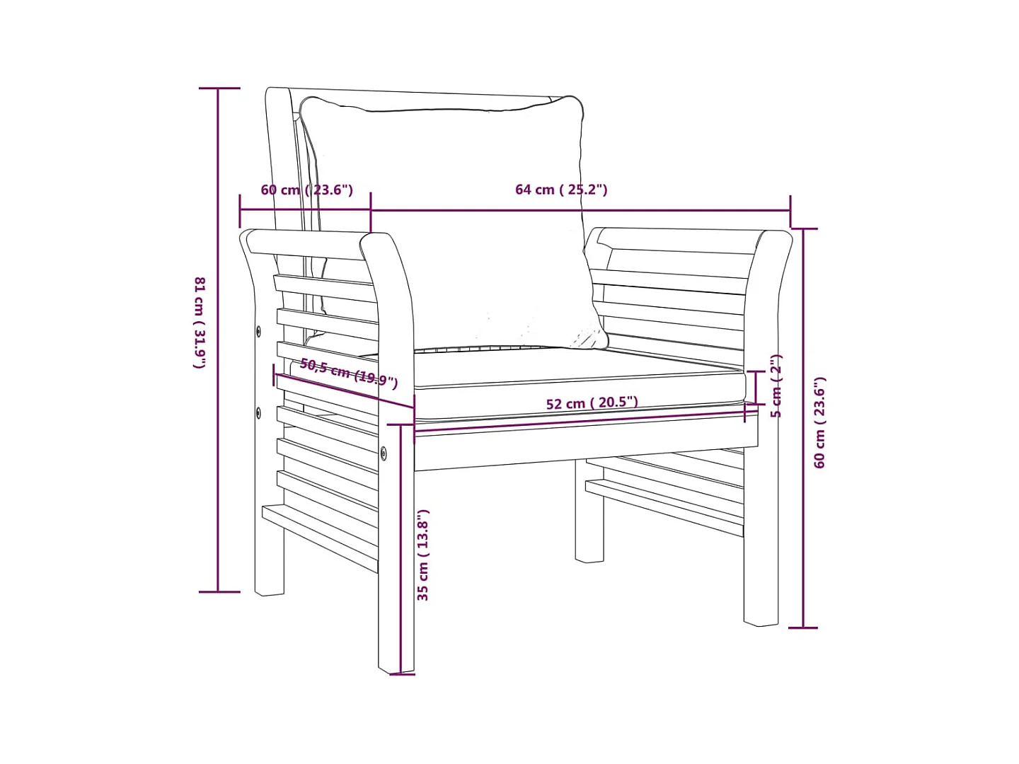 Sillón de jardín con cojines 2 unidades madera maciza acacia