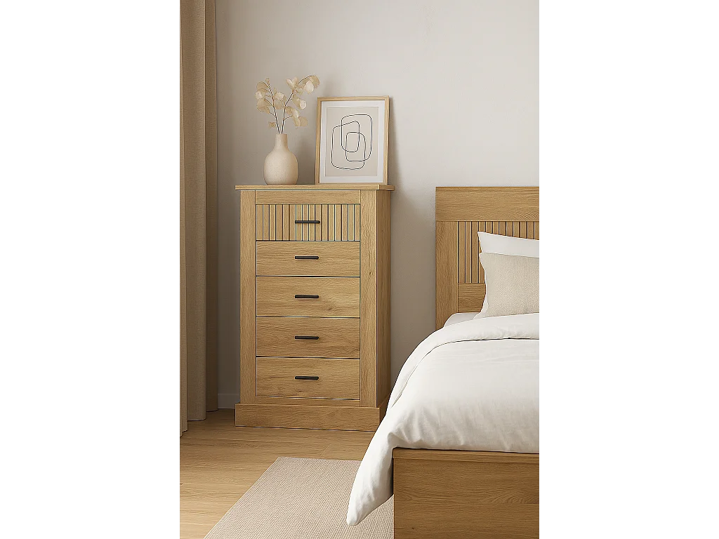 Sinfonier 5 Cajones, Cómoda, Gran Espacio Almacenaje Dormitorio, Acabado en Mauvella Rayas / 66 cm (Largo) x 107 cm (Alto) x 39,6 cm de (Fondo)
