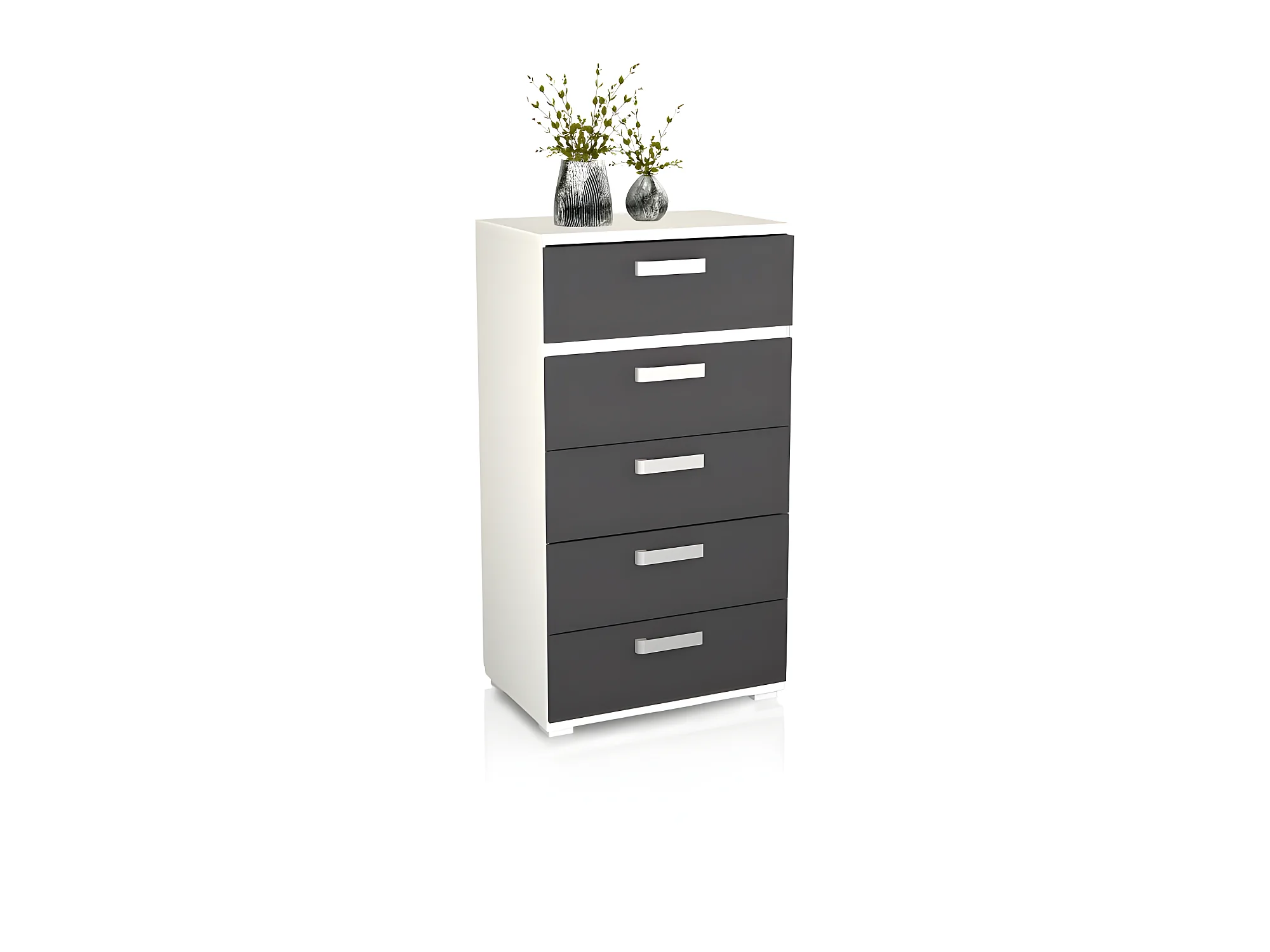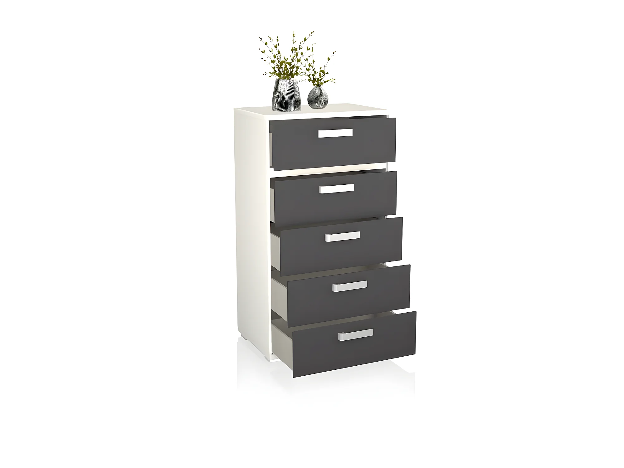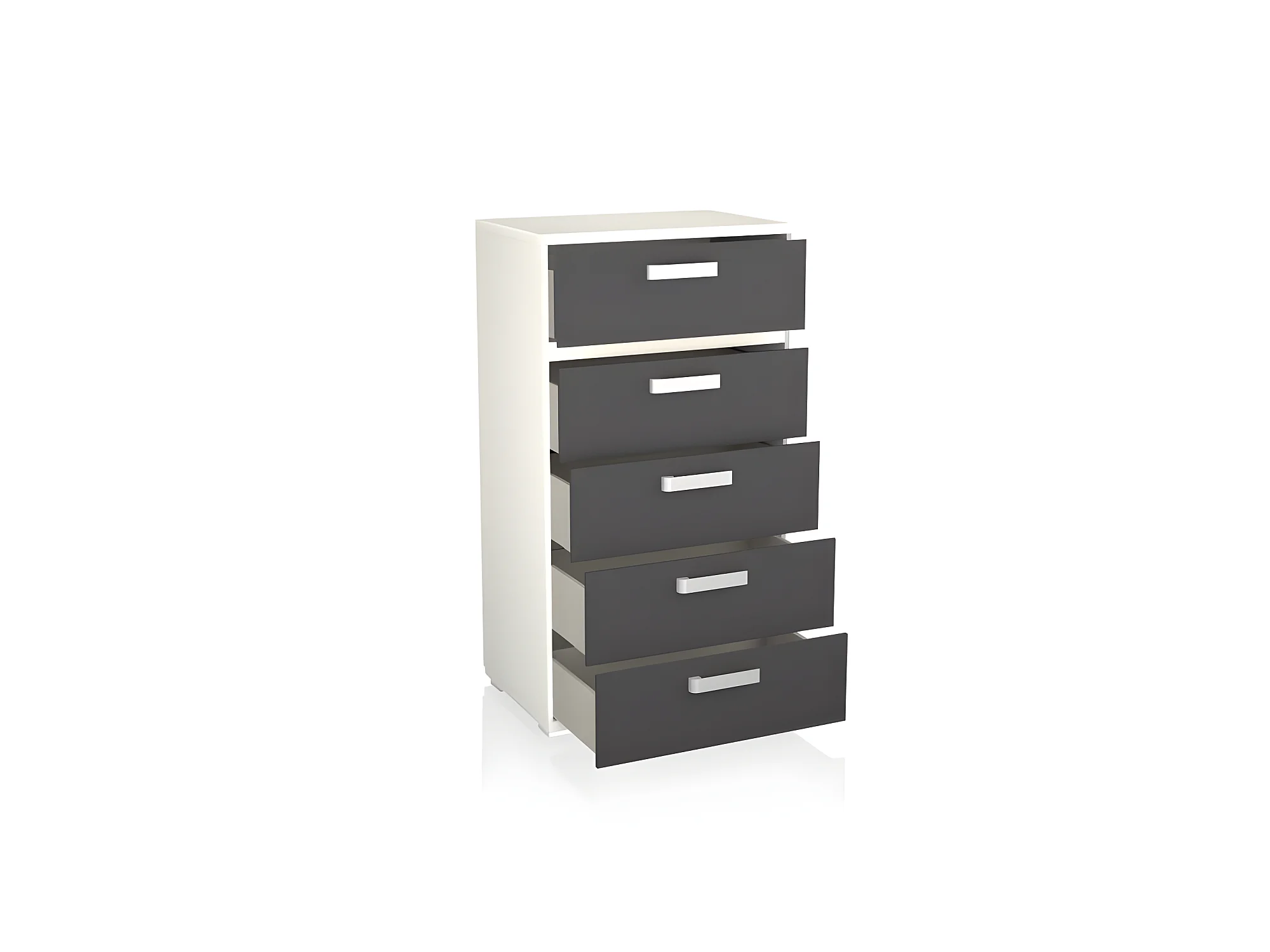 Sinfonier 5 cajones Modelo Tempo en blanco artik/cemento. 118cm(alto) 61cm(ancho) 40cm(fon